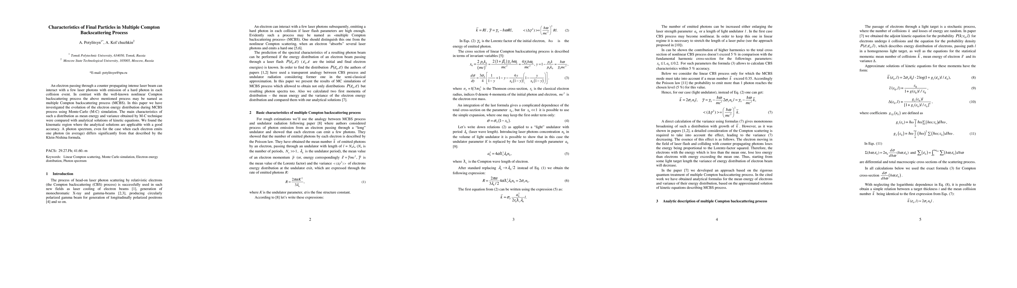This paper investigates the electron energy distribution during multiple Compton backscattering (MCBS) using Monte-Carlo simulations, comparing results with analytical solutions. It identifies the kinematic region where analytical solutions are accurate and finds that the photon spectrum deviates from the Klein-Nishina formula.
