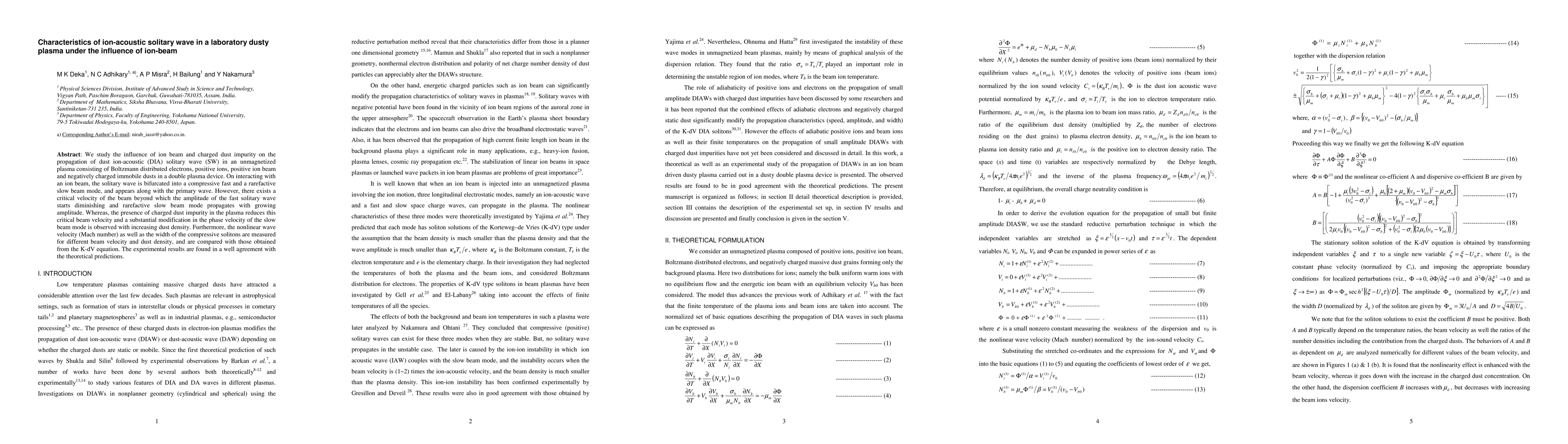 We study the influence of ion beam and charged dust impurity on the propagation of dust ion-acoustic (DIA) solitary wave (SW) in an unmagnetized plasma consisting of Boltzmann distributed electrons, positive ions, positive ion beam and negatively charged immobile dusts in a double plasma device. On interacting with an ion beam, the solitary wave is bifurcated into a compressive fast and a rarefactive slow beam mode, and appears along with the primary wave. However, there exists a critical velocity of the beam beyond which the amplitude of the fast solitary wave starts diminishing and rarefactive slow beam mode propagates with growing amplitude. Whereas, the presence of charged dust impurity in the plasma reduces this critical beam velocity and a substantial modification in the phase velocity of the slow beam mode is observed with increasing dust density. Furthermore, the nonlinear wave velocity (Mach number) as well as the width of the compressive solitons are measured for different beam velocity and dust density, and are compared with those obtained from the K-dV equation. The experimental results are found in a well agreement with the theoretical predictions.