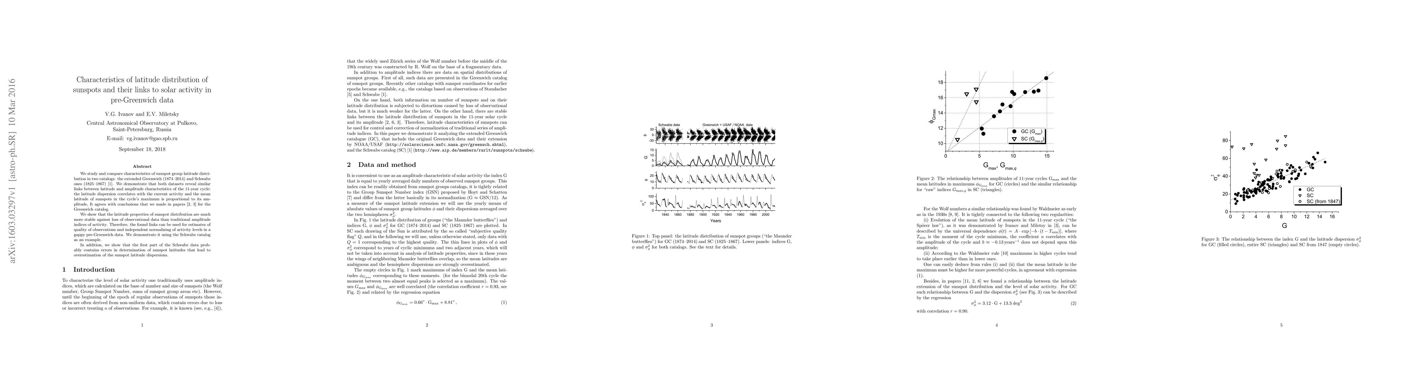We study and compare characteristics of sunspot group latitude distribution in two catalogs: the extended Greenwich (1874--2014) and Schwabe ones (1825--1867). We demonstrate that both datasets reveal similar links between latitude and amplitude characteristics of the 11-year cycle: the latitude dispersion correlates with the current activity and the mean latitude of sunspots in the cycle's maximum is proportional to its amplitude, It agrees with conclusions that we made in previous papers for the Greenwich catalog. We show that the latitude properties of sunspot distribution are much more stable against loss of observational data than traditional amplitude indices of activity. Therefore, the found links can be used for estimates of quality of observations and independent normalizing of activity levels in a gappy pre-Greenwich data. We demonstrate it using the Schwabe catalog as an example. In addition, we show that the first part of the Schwabe data probably contains errors in determination of sunspot latitudes that lead to overestimation of the sunspot latitude dispersions.