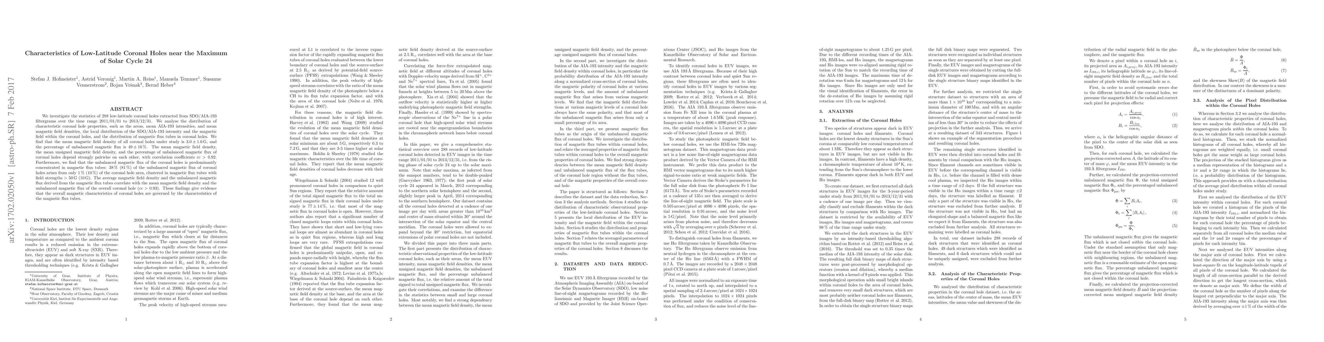 A study of 288 low-latitude coronal holes found that their magnetic field density and unbalanced magnetic flux are strongly correlated with each other, suggesting that the overall characteristics of coronal holes are determined by the properties of individual magnetic flux tubes.