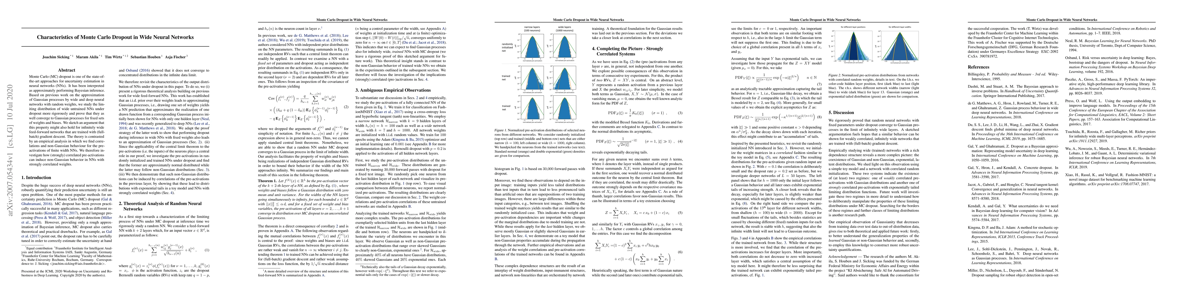 This paper rigorously explores the theoretical underpinnings of Monte Carlo dropout in wide neural networks, proving that wide untrained NNs under dropout converge to Gaussian processes. It contrasts this theory with empirical findings showing correlations and non-Gaussian behavior in finite width networks, investigating the impact of correlated pre-activations on network behavior.