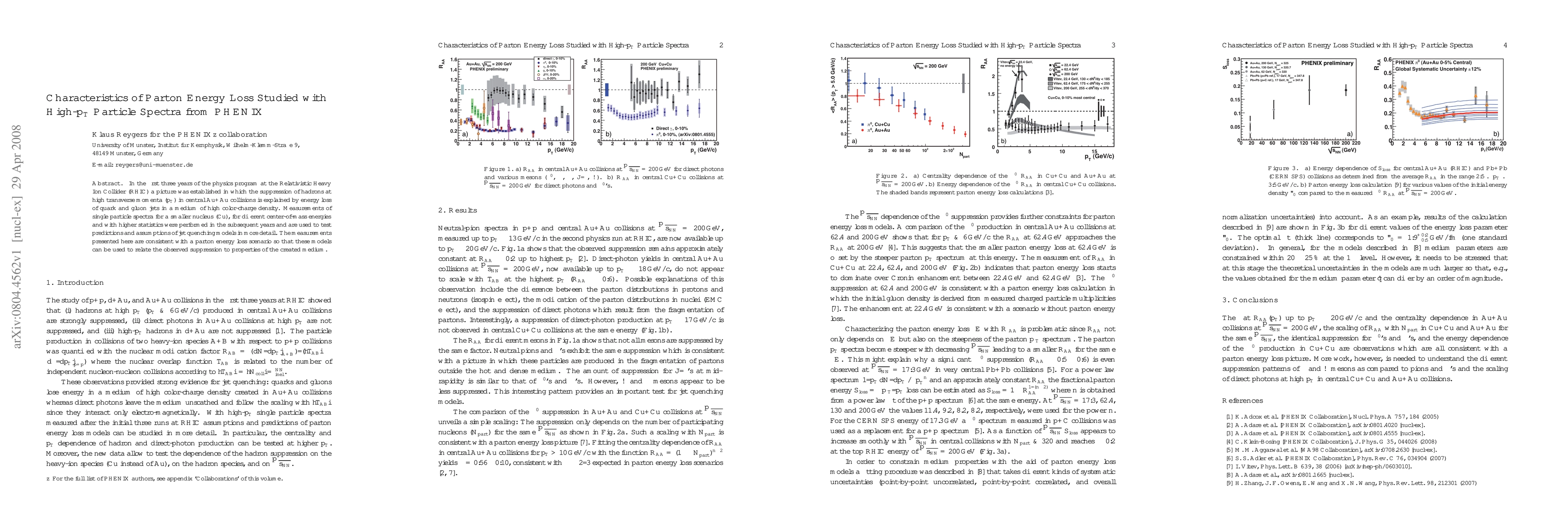 This paper investigates the characteristics of parton energy loss in high-p_T particle spectra using data from PHENIX at RHIC, confirming that the suppression of hadrons in central Au+Au collisions is due to energy loss in a high-density medium. The study extends these findings with Cu data, higher statistics, and different energies to further validate jet quenching models.