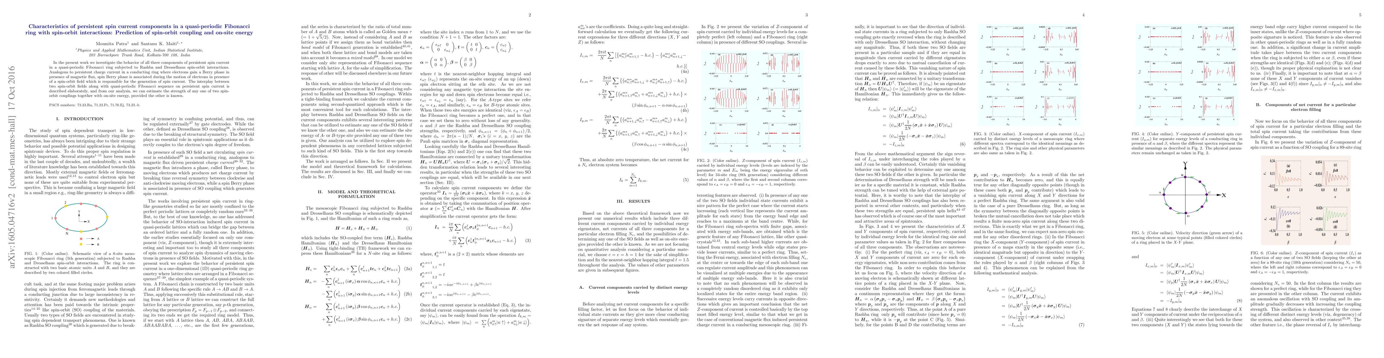 This paper investigates the behavior of persistent spin current in a quasi-periodic Fibonacci ring under Rashba and Dresselhaus spin-orbit interactions, revealing the generation of spin current via spin Berry phase. The study elaborates on the interplay between spin-orbit fields and the Fibonacci sequence, enabling the estimation of spin-orbit coupling and on-site energy.