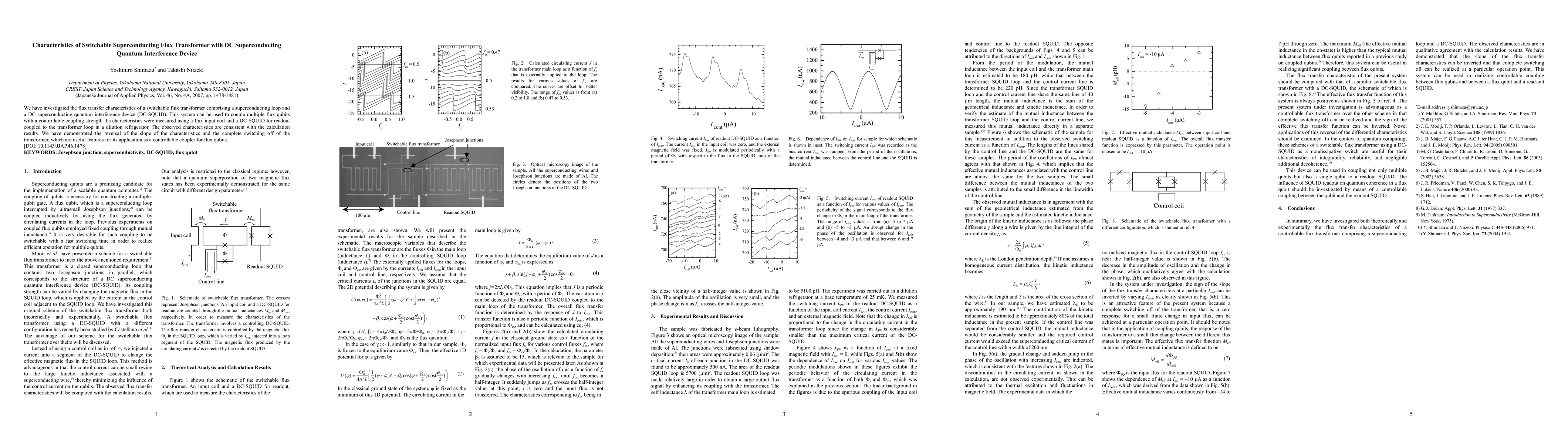 This paper investigates a switchable superconducting flux transformer with a DC-SQUID, demonstrating its ability to couple multiple flux qubits with controllable coupling strength. The system's characteristics, including reversible slope and complete switching off, were measured and found consistent with theoretical calculations.