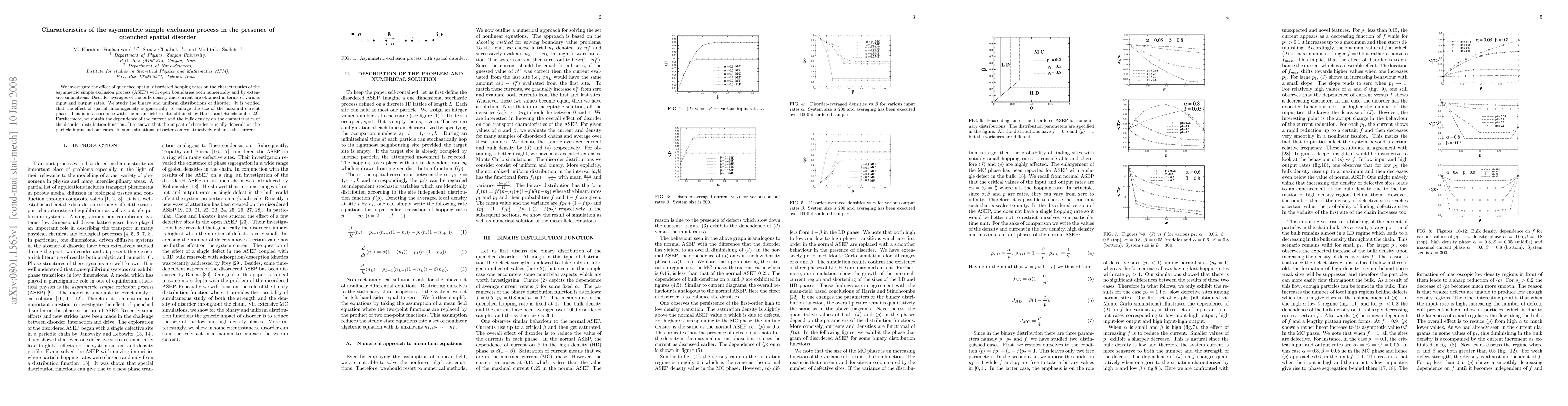We investigate the effect of quenched spatial disordered hopping rates on the characteristics of the asymmetric simple exclusion process (ASEP) with open boundaries both numerically and by extensive simulations. Disorder averages of the bulk density and current are obtained in terms of various input and output rates. We study the binary and uniform distributions of disorder. It is verified that the effect of spatial inhomogeneity is generically to enlarge the size of the maximal current phase. This is in accordance with the mean field results obtained by Harris and Stinchcombe. Furthermore, we obtain the dependence of the current and the bulk density on the characteristics of the disorder distribution function. It is shown that the impact of disorder crucially depends on the particle input and out rates. In some situations, disorder can constructively enhance the current.