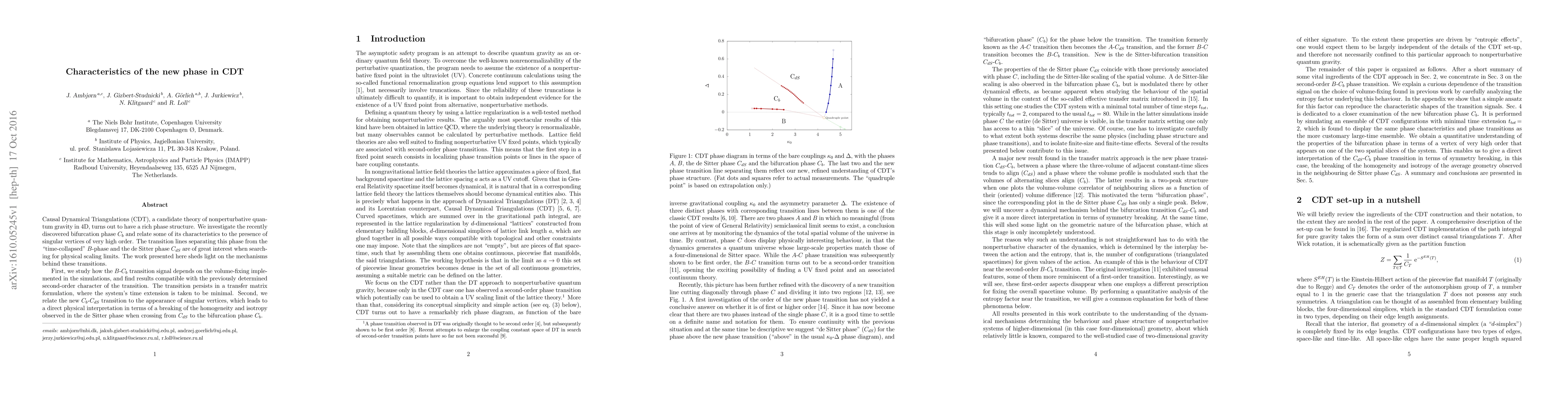 This paper investigates the newly discovered bifurcation phase $C_b$ in Causal Dynamical Triangulations (CDT), a quantum gravity theory, revealing its characteristics linked to high-order singular vertices. It confirms the second-order nature of the $B$-$C_b$ transition and identifies the $C_b$-$C_{dS}$ transition as related to the emergence of singular vertices, indicating a loss of homogeneity and isotropy.