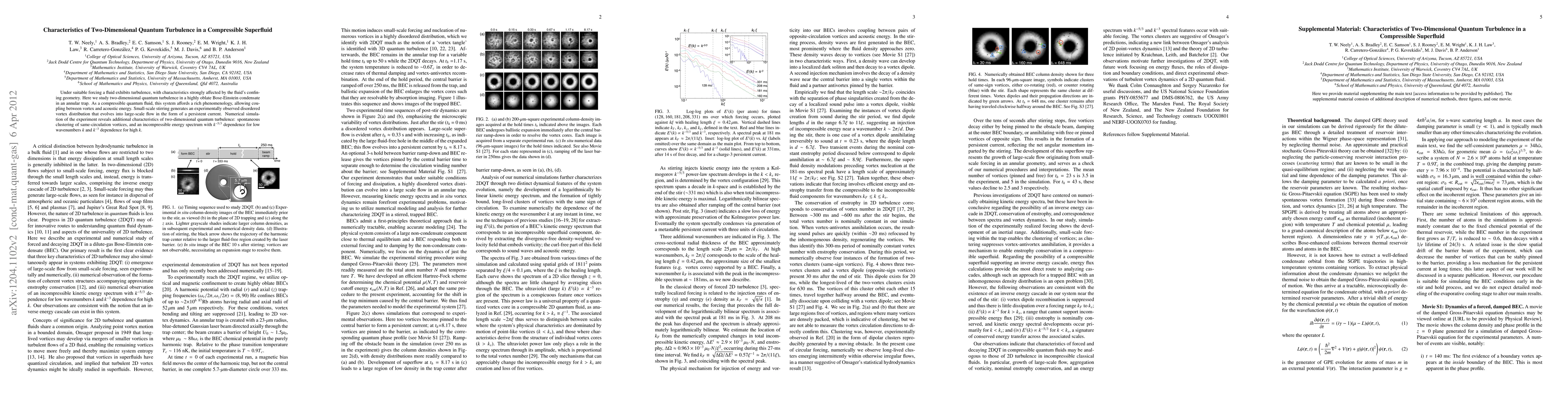 This paper investigates the characteristics of two-dimensional quantum turbulence in a compressible superfluid, specifically within a highly oblate Bose-Einstein condensate in an annular trap. The study reveals spontaneous vortex clustering and a dual energy spectrum, with $k^{-5/3}$ and $k^{-3}$ dependencies for low and high wavenumbers, respectively.