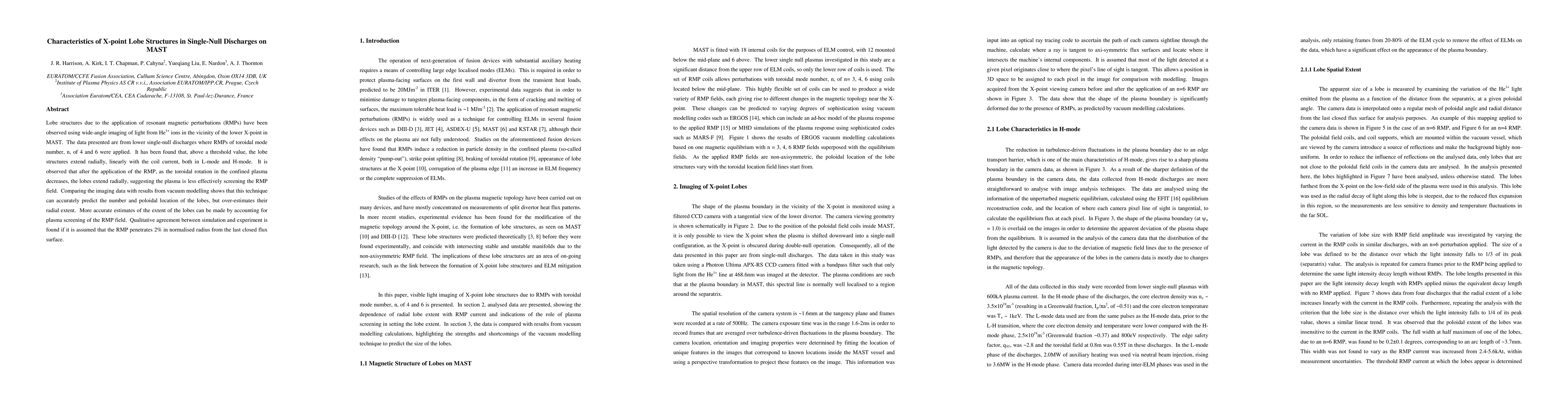 Researchers observed X-point lobe structures in plasma discharges on MAST using resonant magnetic perturbations (RMPs) and found that lobe extent increases with coil current and decreases with toroidal rotation. Simulation results match experimentally when assuming 2% RMP penetration from the last closed flux surface.