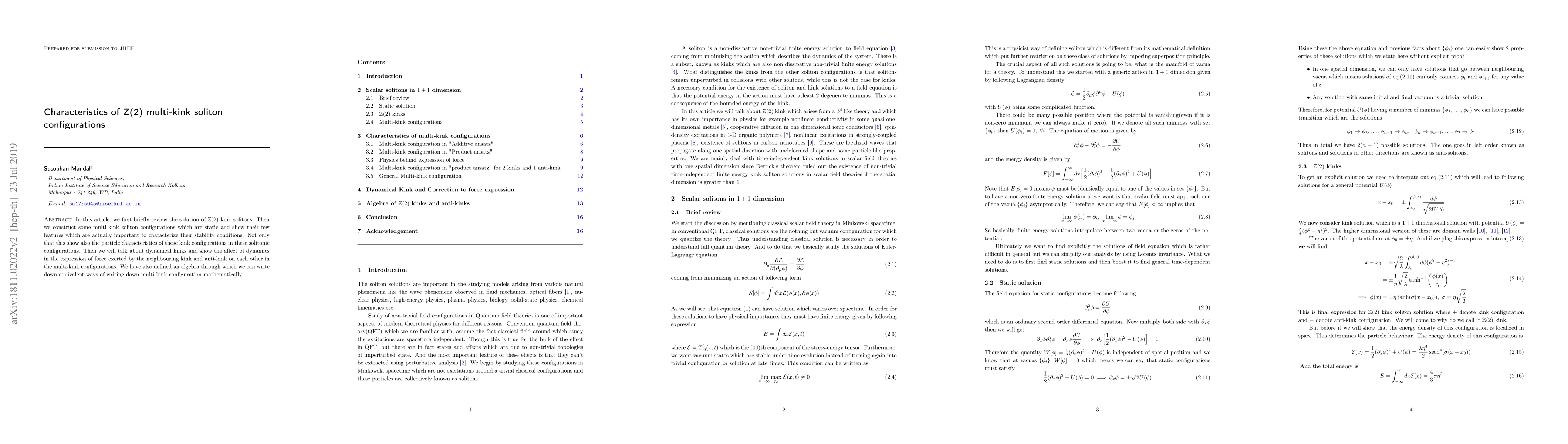 In this article, we first briefly review the solution of Z(2) kink solitons. Then we construct some multi-kink soliton configurations which are static and show their few features which are actually important to characterize their stability conditions. Not only that this show also the particle characteristics of these kink configurations in these solitonic configurations. Then we will talk about dynamical kinks and show the affect of dynamics in the expression of force exerted by the neighbouring kink and anti-kink on each other in the multi-kink configurations. We have also defined an algebra through which we can write down equivalent ways of writing down multi-kink configuration mathematically.