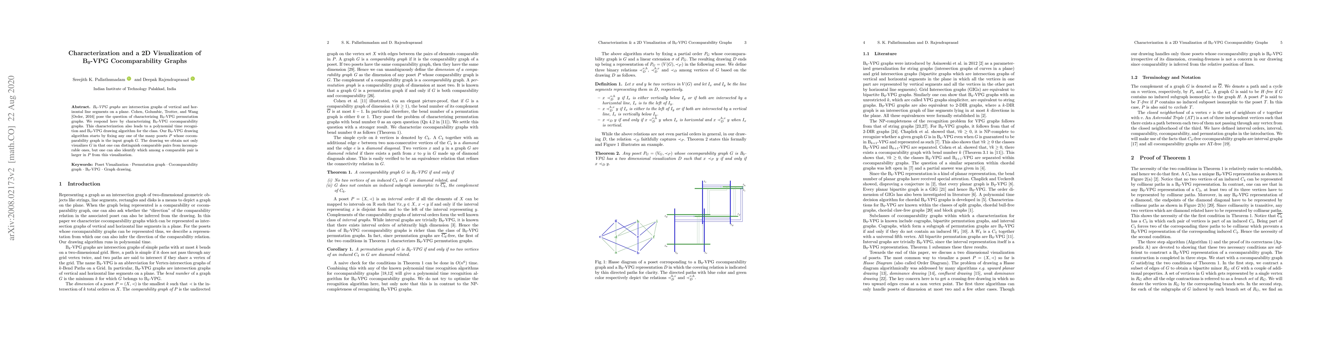 B$_0$-VPG graphs are intersection graphs of vertical and horizontal line segments on a plane. Cohen, Golumbic, Trotter, and Wang [Order, 2016] pose the question of characterizing B$_0$-VPG permutation graphs. We respond here by characterizing B$_0$-VPG cocomparability graphs. This characterization also leads to a polynomial time recognition and B$_0$-VPG drawing algorithm for the class. Our B$_0$-VPG drawing algorithm starts by fixing any one of the many posets $P$ whose cocomparability graph is the input graph $G$. The drawing we obtain not only visualizes $G$ in that one can distinguish comparable pairs from incomparable ones, but one can also identify which among a comparable pair is larger in $P$ from this visualization.
