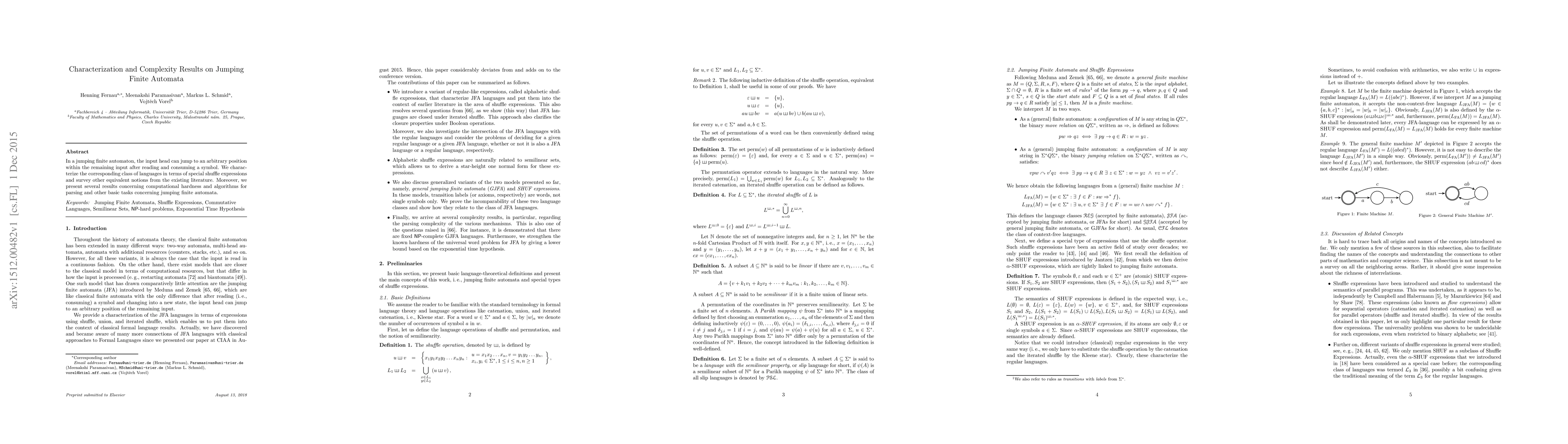 This paper characterizes the languages recognized by jumping finite automata using special shuffle expressions, and surveys equivalent notions from existing literature. It also presents computational complexity results and algorithms for parsing and basic tasks related to these automata.