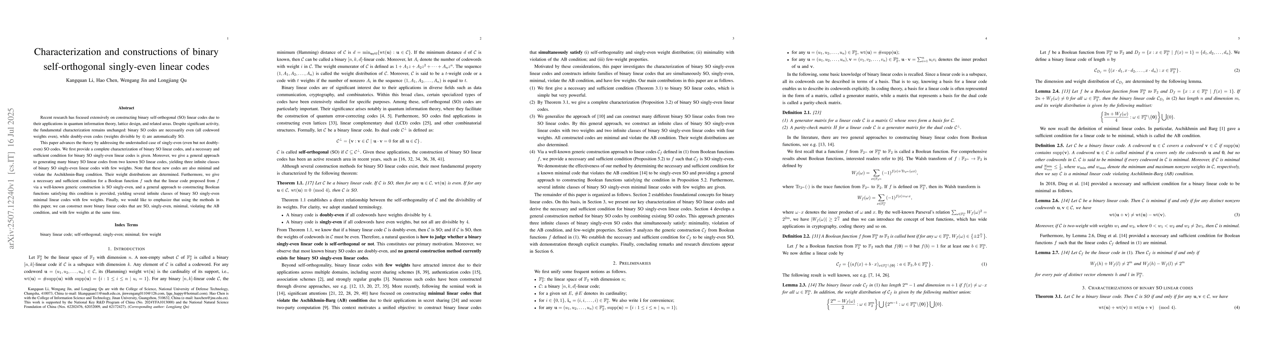 Recent research has focused extensively on constructing binary self-orthogonal (SO) linear codes due to their applications in quantum information theory, lattice design, and related areas. Despite significant activity, the fundamental characterization remains unchanged: binary SO codes are necessarily even (all codeword weights even), while doubly-even codes (weights divisible by $4$) are automatically SO. This paper advances the theory by addressing the understudied case of singly-even (even but not doubly-even) SO codes. We first provide a complete characterization of binary SO linear codes, and a necessary and sufficient condition for binary SO singly-even linear codes is given. Moreover, we give a general approach to generating many binary SO linear codes from two known SO linear codes, yielding three infinite classes of binary SO singly-even linear codes with few weights. Note that these new codes are also minimal and violate the Aschikhmin-Barg condition. Their weight distributions are determined. Furthermore, we give a necessary and sufficient condition for a Boolean function $f$ such that the linear code proposed from $f$ via a well-known generic construction is SO singly-even, and a general approach to constructing Boolean functions satisfying this condition is provided, yielding several infinite classes of binary SO singly-even minimal linear codes with few weights. Finally, we would like to emphasize that using the methods in this paper, we can construct more binary linear codes that are SO, singly-even, minimal, violating the AB condition, and with few weights at the same time.