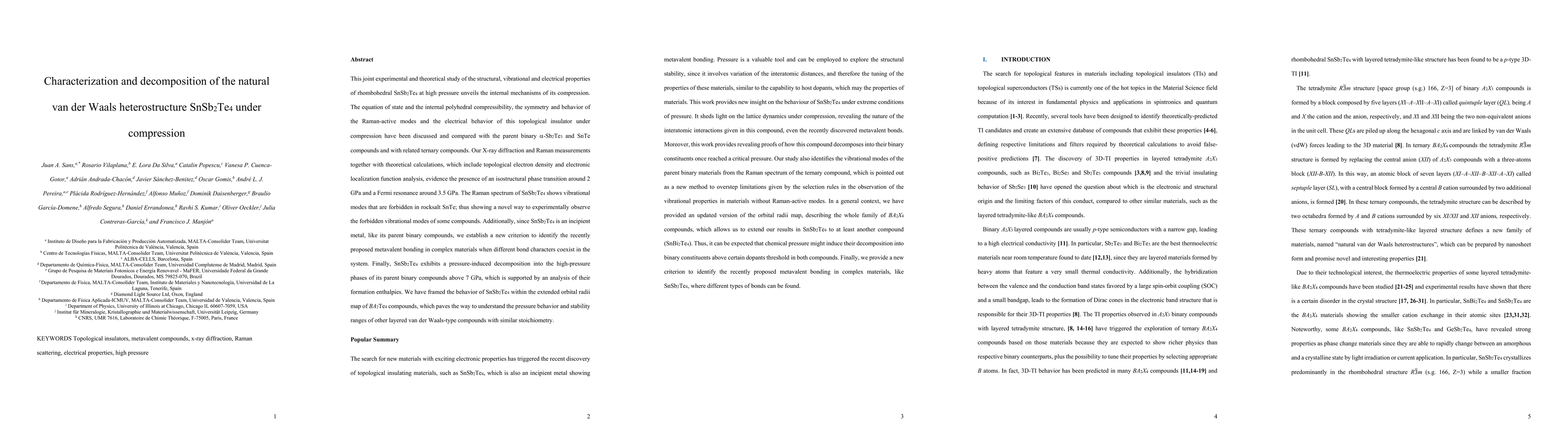 This study investigates the structural, vibrational, and electrical properties of SnSb2Te4 under high pressure, revealing an isostructural phase transition and Fermi resonance, and establishing a new criterion for metavalent bonding in complex materials. SnSb2Te4 decomposes into high-pressure phases of its parent compounds above 7 GPa, providing insights into the stability of layered van der Waals compounds.