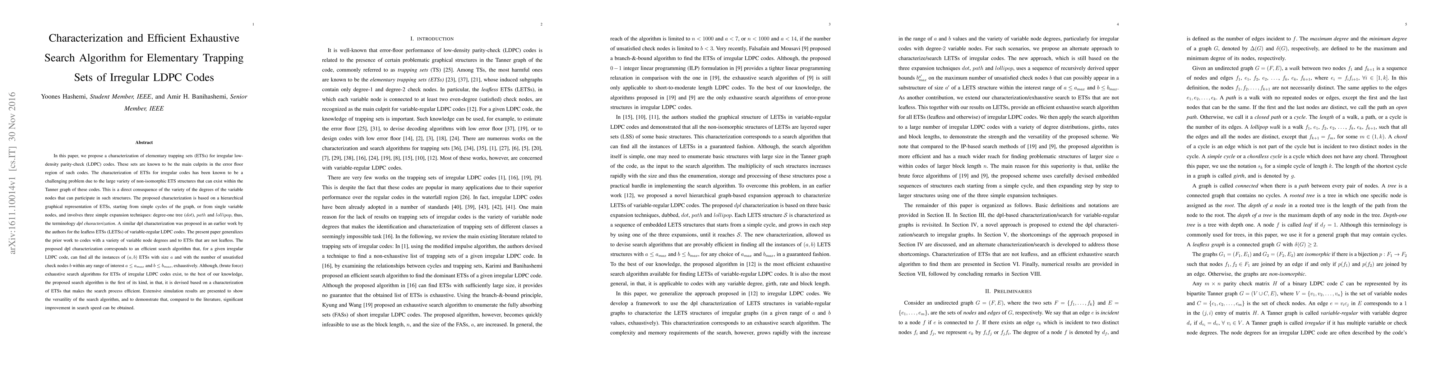 Researchers developed a new method to efficiently search for elementary trapping sets in irregular LDPC codes, which can help improve code reliability, and demonstrated significant speedup over existing algorithms through simulation results.