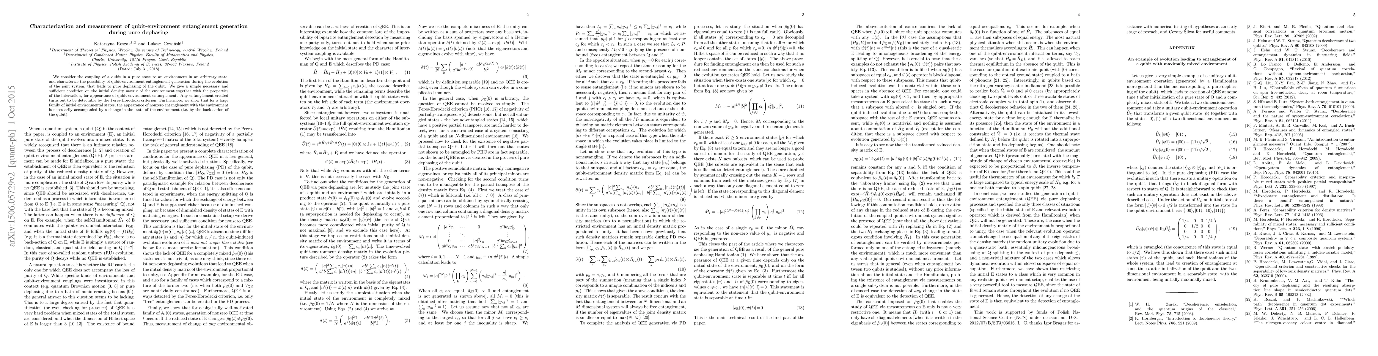 This paper investigates the generation of qubit-environment entanglement during pure dephasing, providing a necessary and sufficient condition for its occurrence based on the initial density matrix of the environment and interaction properties. It concludes that any generated entanglement is detectable and often accompanied by a change in the environment state due to qubit back-action.