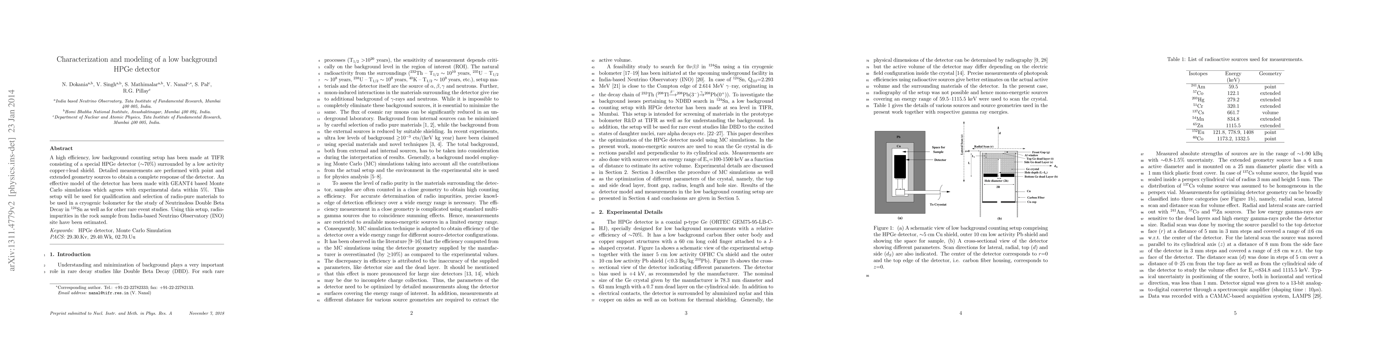 This paper characterizes a high-efficiency, low background HPGe detector surrounded by a low activity shield, modeled using GEANT4 simulations, and applied for radio-pure material selection and impurity estimation in rare event studies. The model agrees with experimental data within 5%, demonstrating its utility for neutrinoless double beta decay studies and other applications.