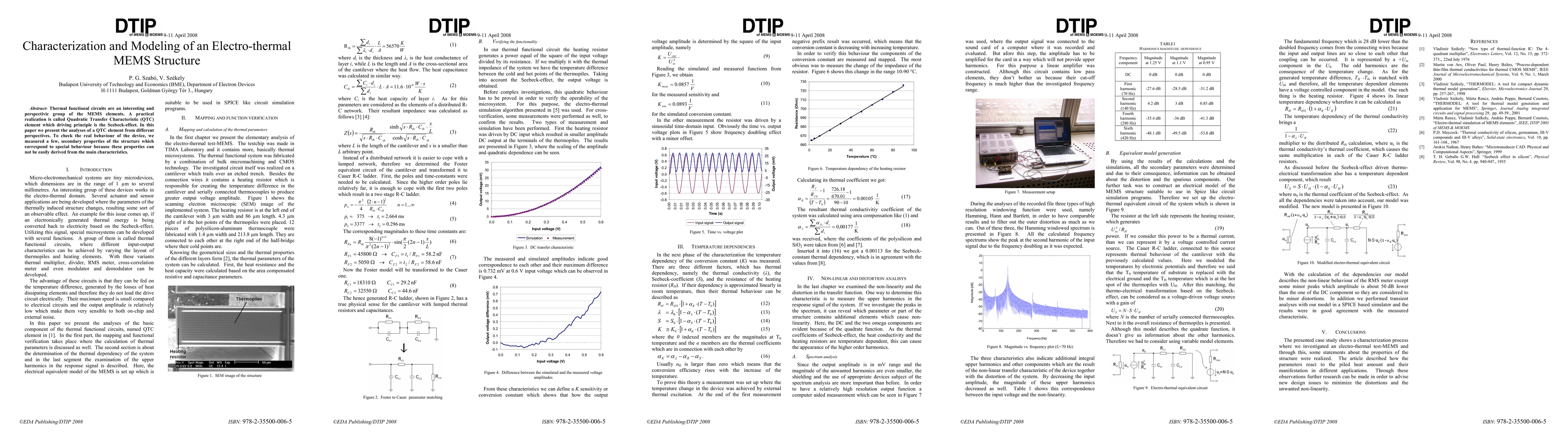 Thermal functional circuits are an interesting and perspectivic group of the MEMS elements. A practical realization is called Quadratic Transfer Characteristic (QTC) element which driving principle is the Seebeck-effect. In this paper we present the analyses of a QTC element from different perspectives. To check the real behavior of the device, we measured a few, secondary properties of the structure which correspond to special behavior because these properties can not be easily derived from the main characteristics.