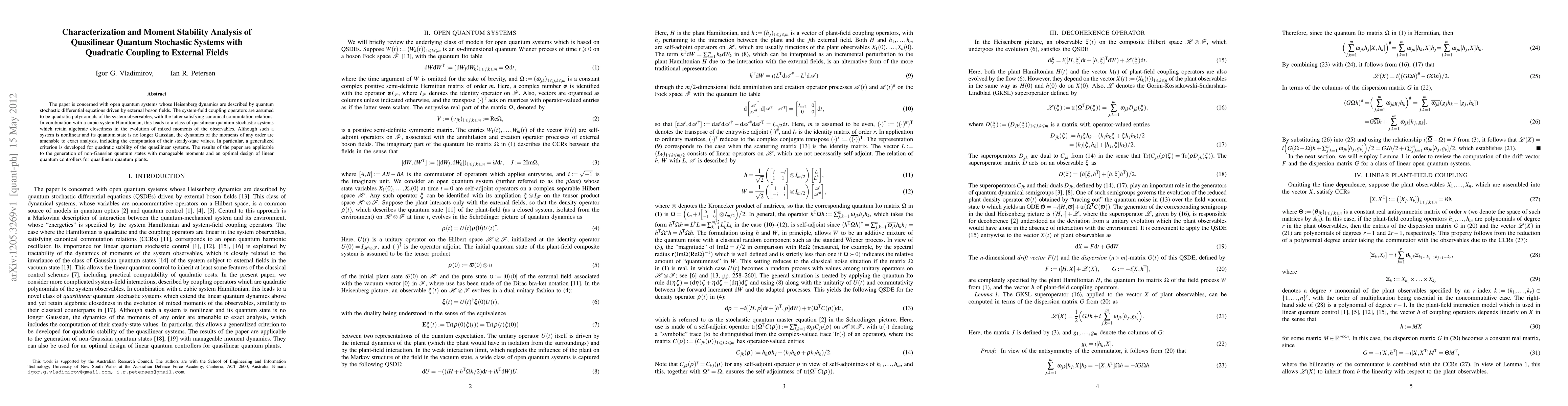 This paper characterizes quasilinear quantum stochastic systems with quadratic coupling to external fields, focusing on the dynamics of their mixed moments. It develops a generalized criterion for moment stability and applies the findings to generate non-Gaussian quantum states and design optimal linear quantum controllers.