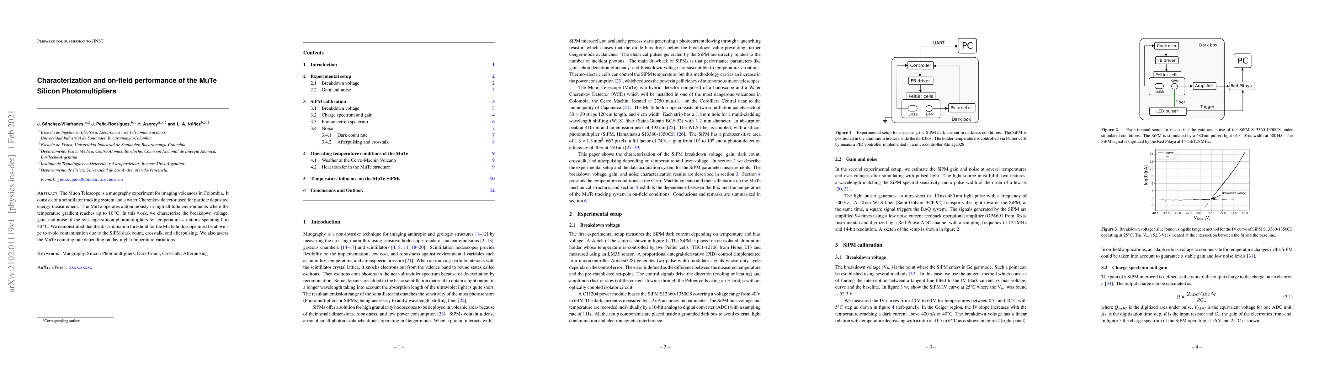 The paper presents detailed characterization of SiPM parameters (breakdown voltage, gain, and noise) as functions of temperature and over-voltage, providing essential data for optimizing SiPM usage in high-altitude muography experiments.