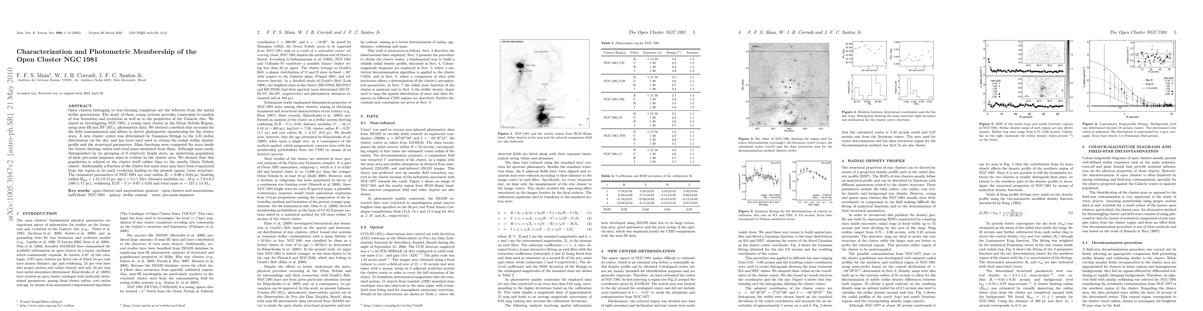Open clusters belonging to star-forming complexes are the leftovers from the initial stellar generations. The study of these young systems provides constraints to models of star formation and evolution as well as to the properties of the Galactic disc. We aimed at investigating NGC1981, a young open cluster in the Orion Nebula Region, using near-IR and BV (RI)C photometric data.We devised a method that accounts for the field contamination and allows to derive photometric membership for the cluster stars. A new cluster centre was determined by Gaussian fittings to the 2-D stellar distribution on the sky, and has been used used to obtain the radial stellar density profile and the structural parameters. Mass functions were computed for stars inside the cluster limiting radius and total mass estimated from them. Although more easily distinguished by its grouping of 6 relatively bright stars, an underlying population of faint pre-main sequence stars is evident in the cluster area. We showed that this population is related to the cluster itself rather than to the nearby Orion Nebula cluster. Additionally a fraction of the cluster low mass stars may have been evaporated from the region in its early evolution leading to the present sparse, loose structure. The estimated parameters of NGC1981 are core radius Rc = 0.09 +/- 0.04 pc, limiting radius Rlim = 1.21+/-0.11 pc, age t = 5+/-1 Myr, distance modulus (m-M)0 = 7.9+/-0.1 (380 +/- 17 pc), reddening E(B - V)= 0.07 +/- 0.03 and total mass m = 137 +/- 14 M\cdot.