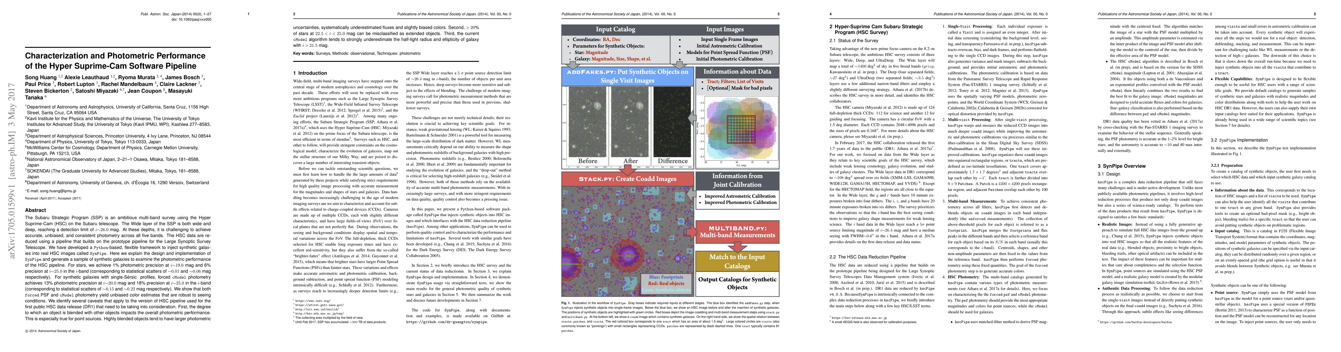This paper details the design and implementation of SynPipe, a Python-based framework for injecting synthetic galaxies into Hyper Suprime-Cam (HSC) images, and assesses the photometric performance of the HSC pipeline. The study finds 1% precision for stars and 13% for galaxies in the i-band, but highlights issues like blending impacts, misclassification of stars, and underestimated galaxy parameters in the current pipeline.