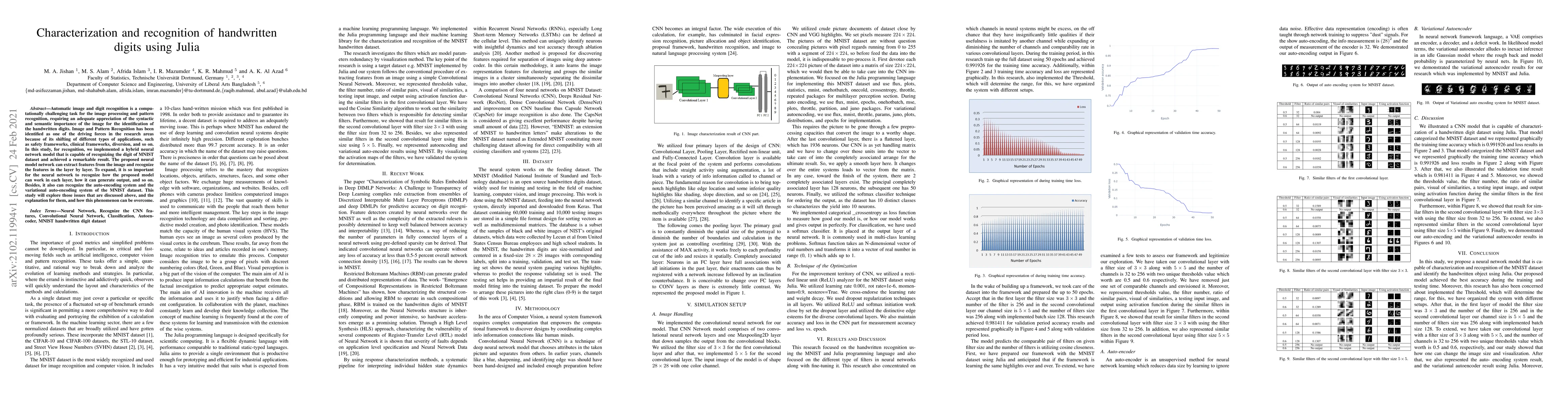 Automatic image and digit recognition is a computationally challenging task for image processing and pattern recognition, requiring an adequate appreciation of the syntactic and semantic importance of the image for the identification ofthe handwritten digits. Image and Pattern Recognition has been identified as one of the driving forces in the research areas because of its shifting of different types of applications, such as safety frameworks, clinical frameworks, diversion, and so on.In this study, for recognition, we implemented a hybrid neural network model that is capable of recognizing the digit of MNISTdataset and achieved a remarkable result. The proposed neural model network can extract features from the image and recognize the features in the layer by layer. To expand, it is so important for the neural network to recognize how the proposed modelcan work in each layer, how it can generate output, and so on. Besides, it also can recognize the auto-encoding system and the variational auto-encoding system of the MNIST dataset. This study will explore those issues that are discussed above, and the explanation for them, and how this phenomenon can be overcome.