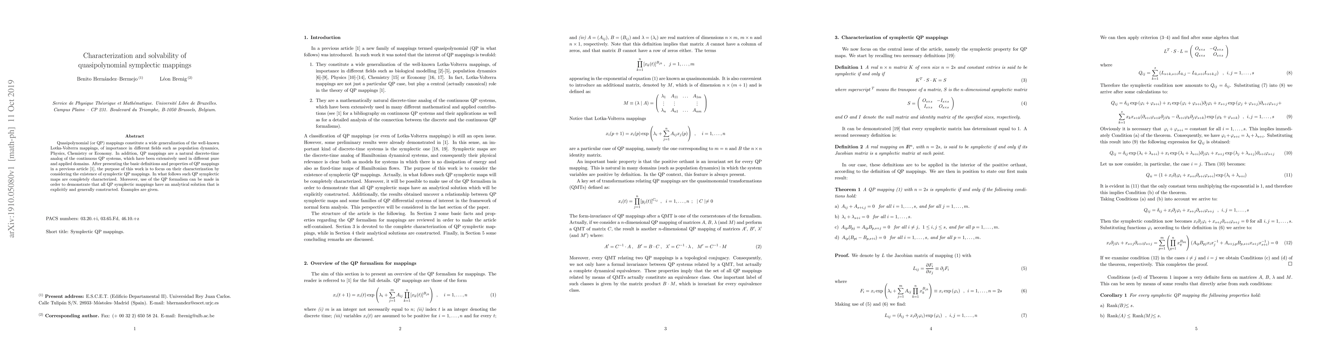 Researchers characterize and solve a type of complex mathematical equation called quasipolynomial symplectic mappings, which have applications in fields like population dynamics, physics, and economics.