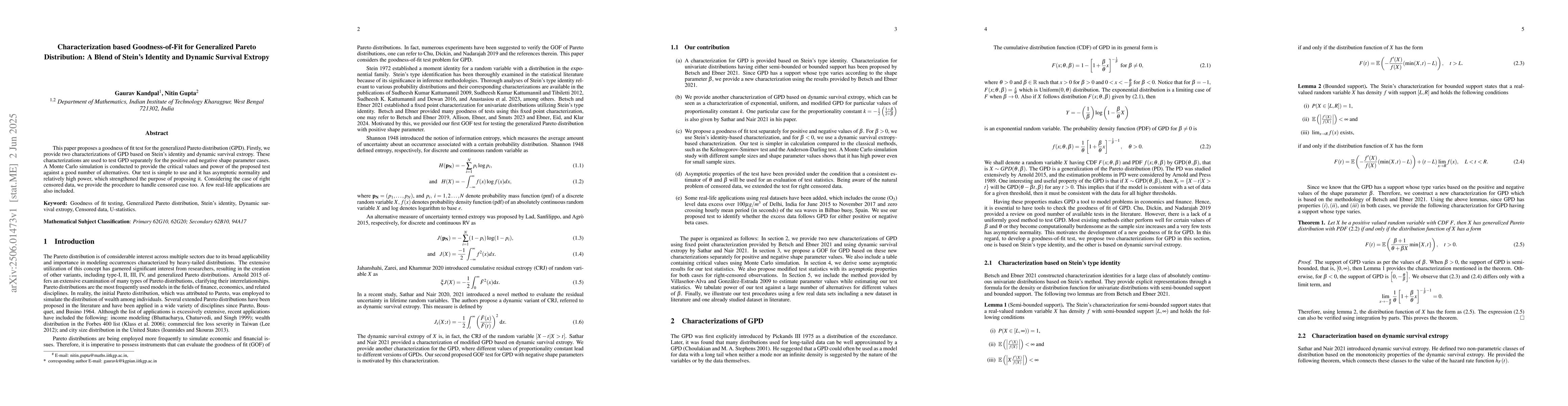 The paper presents a novel characterization-based goodness-of-fit test for GPD, combining Stein's identity and dynamic survival extropy, along with a censoring procedure.