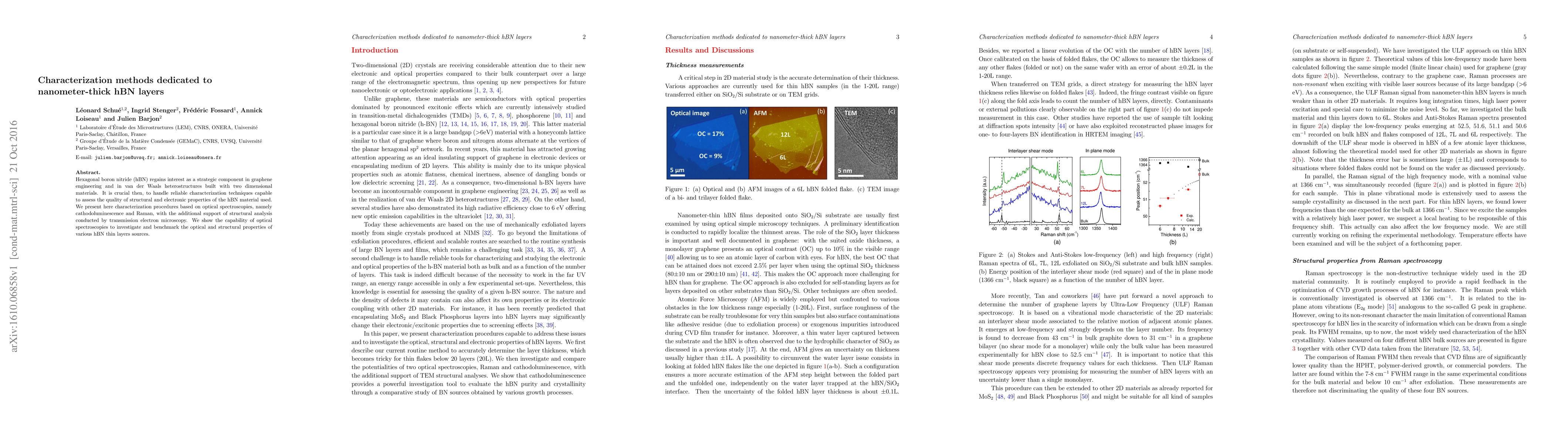 Hexagonal boron nitride (hBN) regains interest as a strategic component in graphene engineering and in van der Waals heterostructures built with two dimensional materials. It is crucial then, to handle reliable characterization techniques capable to assess the quality of structural and electronic properties of the hBN material used. We present here characterization procedures based on optical spectroscopies, namely cathodoluminescence and Raman, with the additional support of structural analysis conducted by transmission electron microscopy. We show the capability of optical spectroscopies to investigate and benchmark the optical and structural properties of various hBN thin layers sources.