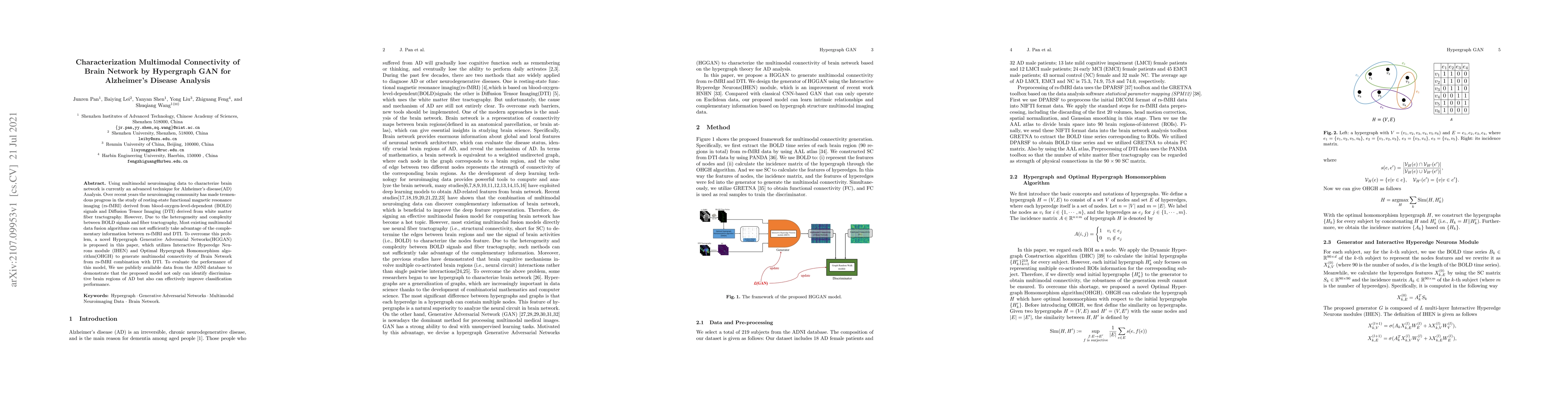 This paper proposes a novel Hypergraph Generative Adversarial Network (HGGAN) to characterize brain network connectivity using multimodal neuroimaging data, specifically combining rs-fMRI and DTI. The HGGAN model, with its Interactive Hyperedge Neurons module and Optimal Hypergraph Homomorphism algorithm, enhances the fusion of complementary information from both data types, leading to improved classification performance in Alzheimer's disease analysis.