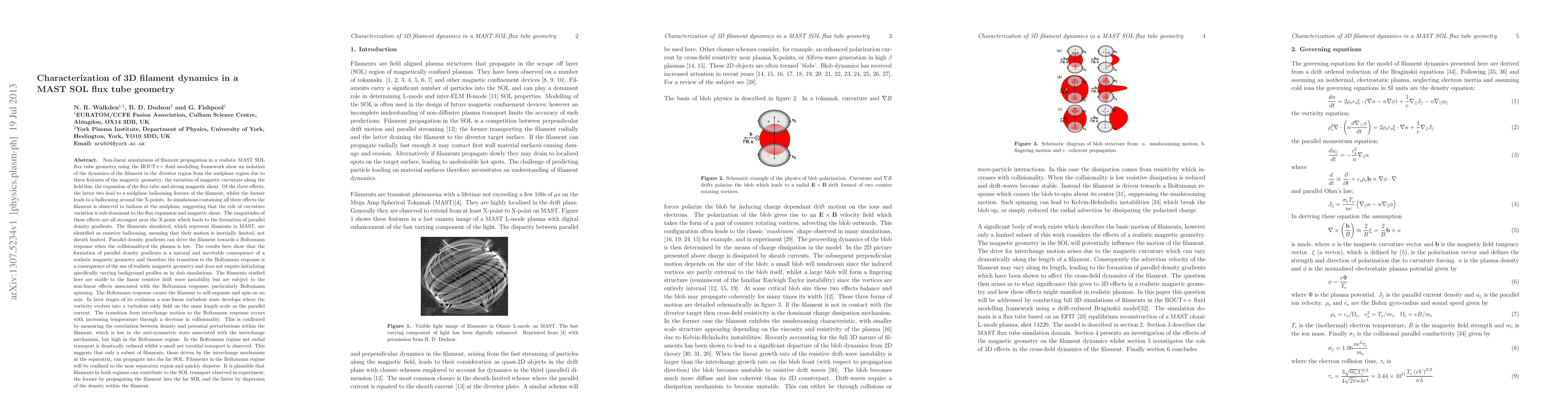 Research shows that 3D filament dynamics in a MAST SOL fluxtube geometry can balloon at midplane due to magnetic shear, with varying curvature and expansion also contributing to the phenomenon. The findings imply that realistic magnetic geometries can drive filaments towards Boltzmann responses, leading to self-organisation and spin.