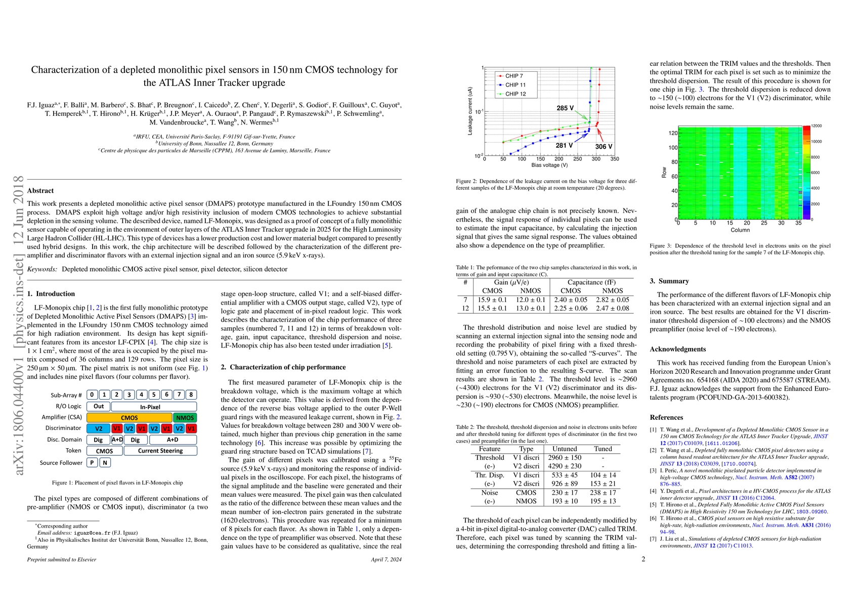 This paper characterizes a depleted monolithic active pixel sensor (DMAPS) prototype, named LF-Monopix, designed for the ATLAS Inner Tracker upgrade using a 150 nm CMOS technology. The device aims to demonstrate a fully monolithic sensor with lower production cost and material budget, and its performance is evaluated using external injection signals and x-ray sources.