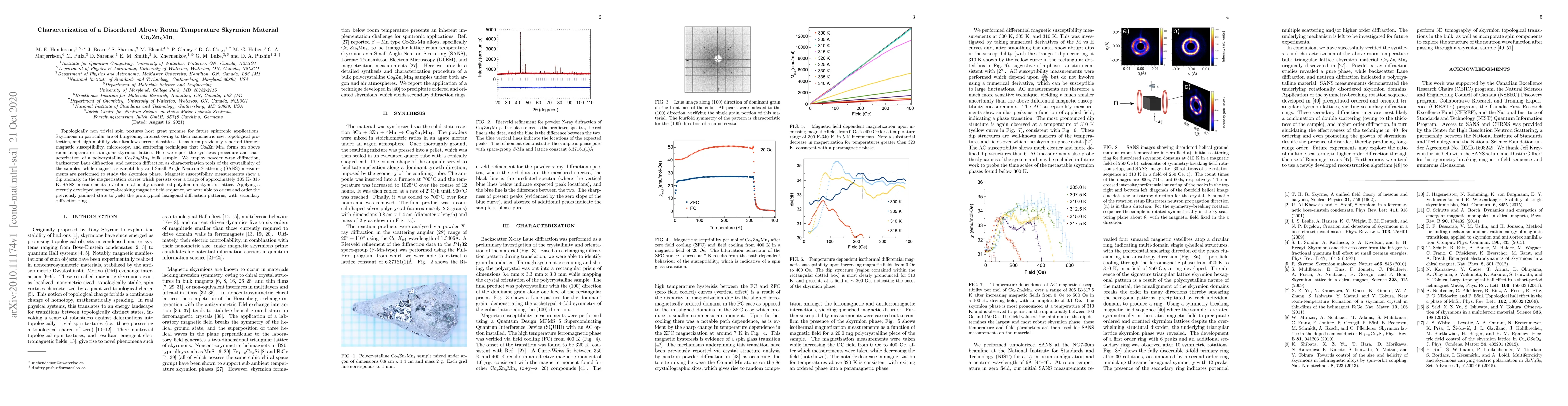 This paper characterizes the polycrystalline material Co$_{8}$Zn$_{8}$Mn$_{4}$ and confirms its formation of a disordered above-room-temperature skyrmion lattice using various diffraction and scattering techniques. Magnetic susceptibility and SANS measurements reveal a skyrmion phase with rotational disorder, which can be ordered via a symmetry-breaking magnetic field.