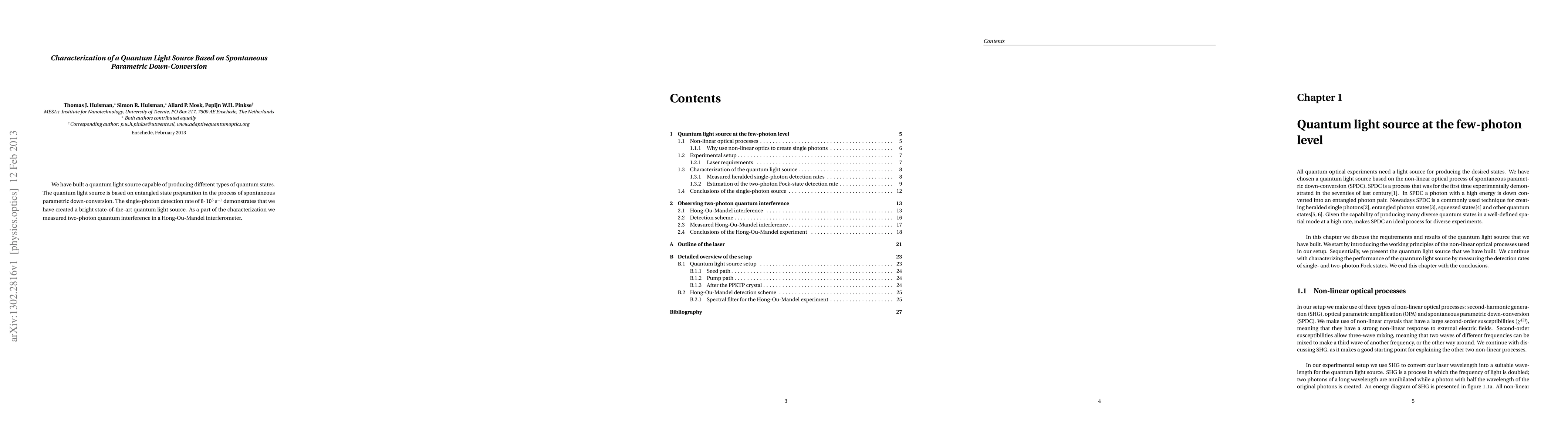 We have built a quantum light source capable of producing different types of quantum states. The quantum light source is based on entangled state preparation in the process of spontaneous parametric down-conversion. The single-photon detection rate of eight-hundred thousand per second demonstrates that we have created a bright state-of-the-art quantum light source. As a part of the characterization we measured two-photon quantum interference in a Hong-Ou-Mandel interferometer.
