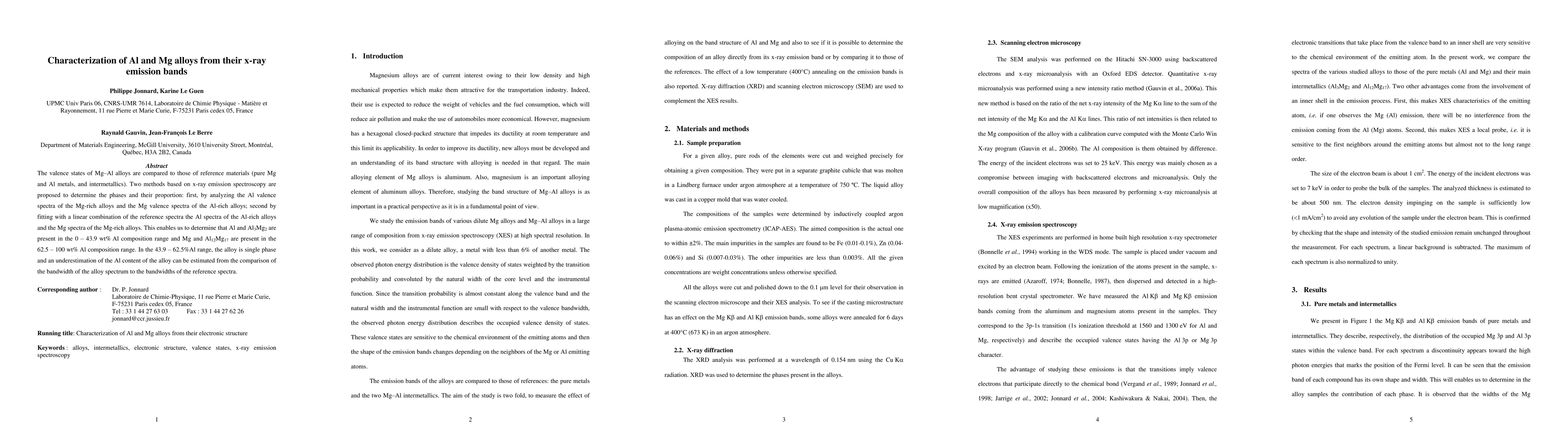 This paper proposes two X-ray emission spectroscopy methods to characterize Mg-Al alloys, determining phase and composition proportions. The study identifies specific alloy phases within different Al concentration ranges, revealing complexities in the 43.9-62.5% Al composition range.