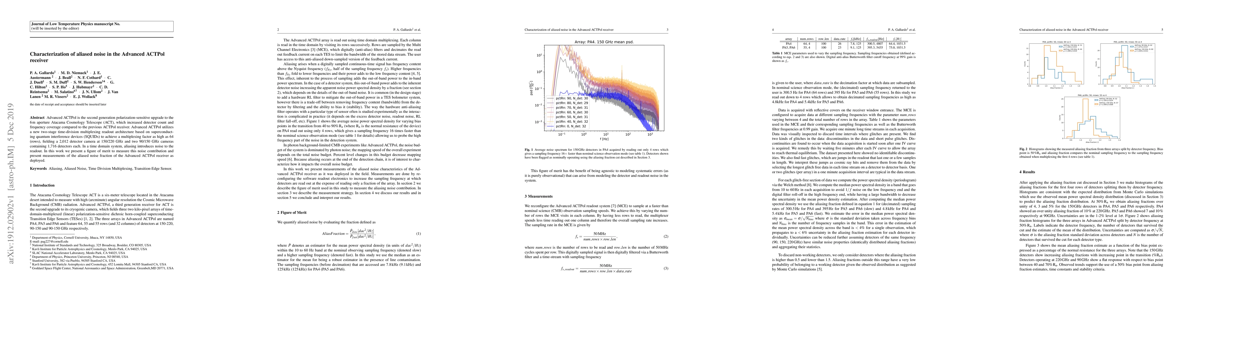 This paper characterizes the aliased noise in the Advanced ACTPol receiver, which employs a two-stage time-division multiplexing architecture based on SQUIDs. It introduces a figure of merit to quantify the noise contribution and reports measurements of the aliased noise fraction in the deployed system.