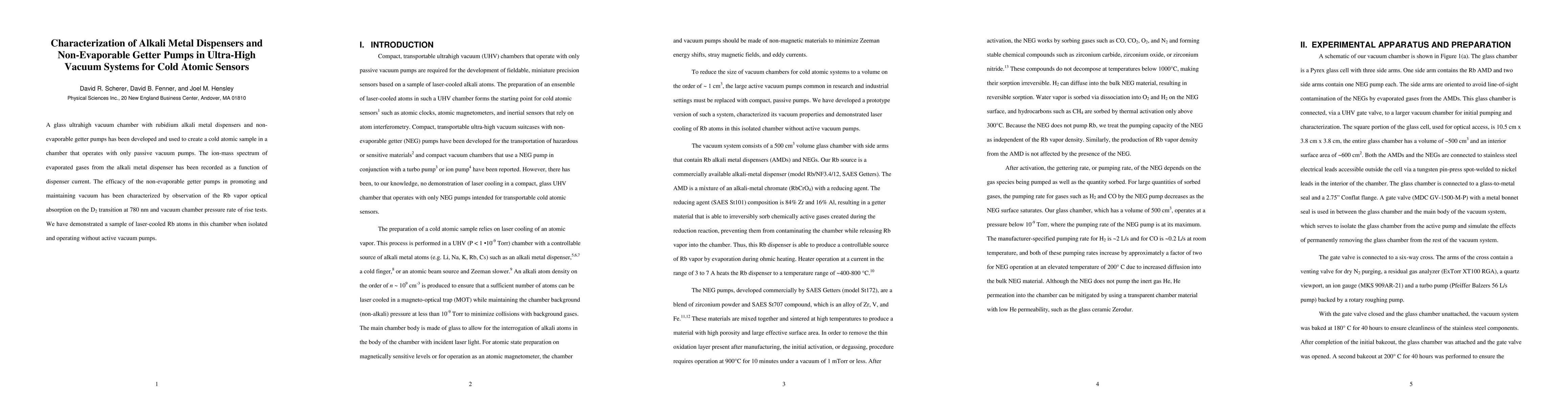 This paper details the development of a glass ultrahigh vacuum chamber utilizing rubidium alkali metal dispensers and non-evaporable getter pumps to create a cold atomic sample. The study characterizes the chamber's vacuum maintenance efficacy through optical absorption and pressure rate tests, demonstrating successful laser-cooled Rb atoms operation without active vacuum pumps.