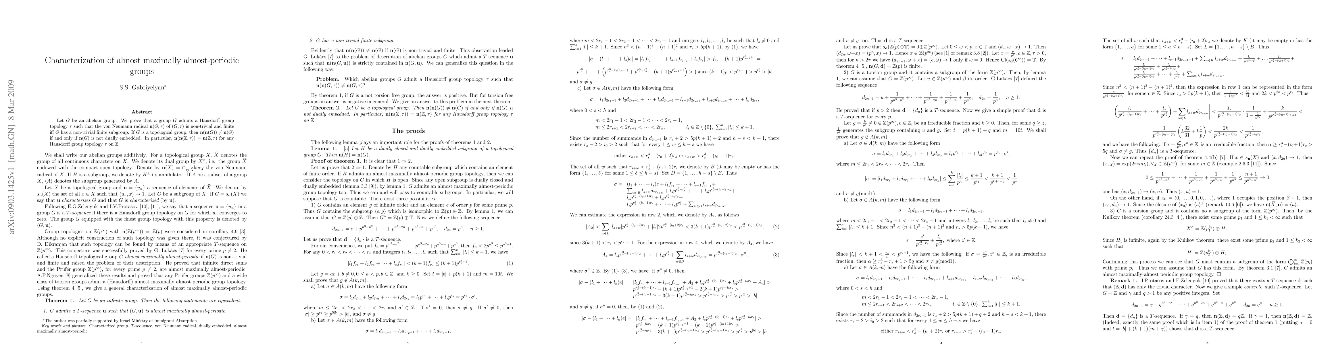Let $G$ be an abelian group. We prove that a group $G$ admits a Hausdorff group topology $\tau$ such that the von Neumann radical $\mathbf{n}(G, \tau)$ of $(G, \tau)$ is non-trivial and finite iff $G$ has a non-trivial finite subgroup. If $G$ is a topological group, then $\mathbf{n} (\mathbf{n} (G)) \not= \mathbf{n} (G)$ if and only if $\mathbf{n} (G)$ is not dually embedded. In particular, $\mathbf{n} (\mathbf{n} (\mathbb{Z},\tau)) = \mathbf{n} (\mathbb{Z},\tau)$ for any Hausdorff group topology $\tau$ on $\mathbb{Z}$.