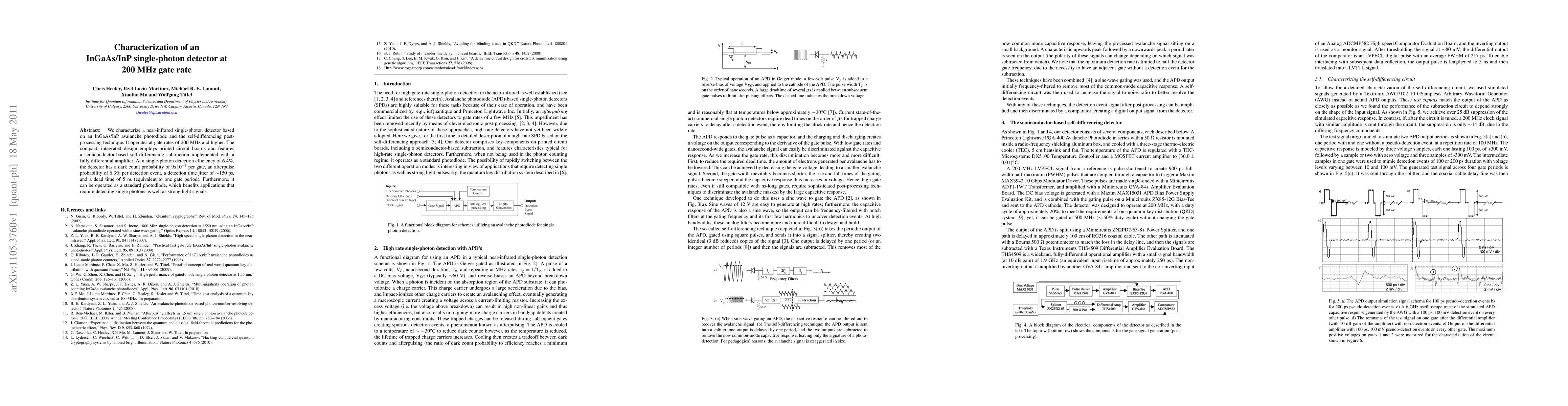 We characterize a near-infrared single-photon detector based on an InGaAs/InP avalanche photodiode and the self-differencing post-processing technique. It operates at gate rates of 200 MHz and higher. The compact, integrated design employs printed circuit boards and features a semiconductor-based self-differencing subtraction implemented with a fully differential amplifier. At a single-photon detection efficiency of 6.4%, the detector has a dark count probability of 9x10^-7 per gate, an afterpulse probability of 6.3% per detection event, a detection time jitter of 150 ps, and a dead time of 5 ns (equivalent to one gate period). Furthermore, it can be operated as a standard photodiode, which benefits applications that require detecting single photons as well as strong light signals.