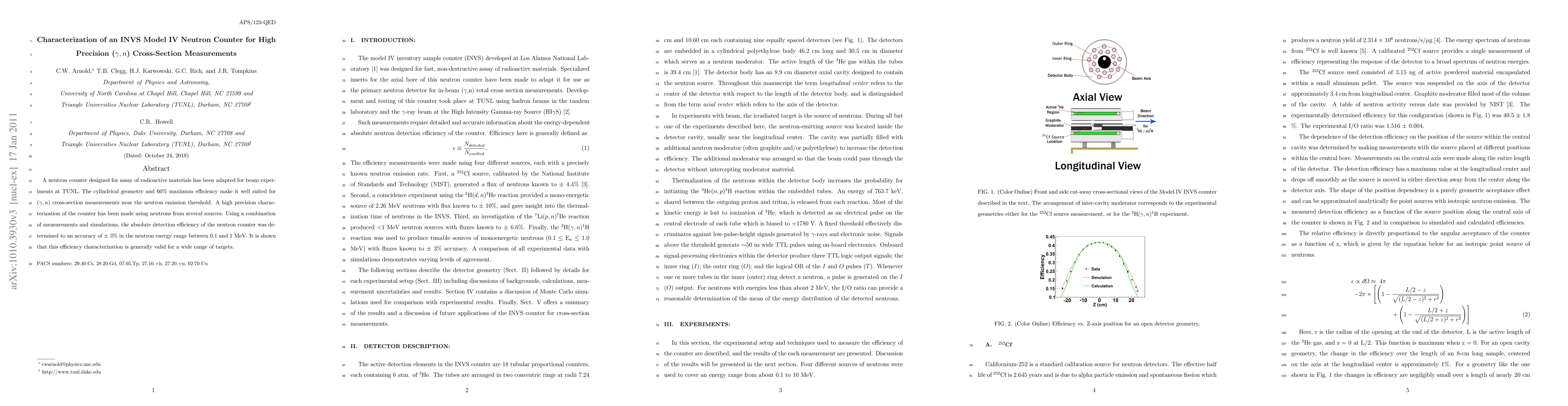 Researchers characterized a neutron counter for high precision ($eta,n$) cross-section measurements, achieving an accuracy of $oxed{ imes}$ in detecting neutrons with energies between 0.1 and 1 MeV.