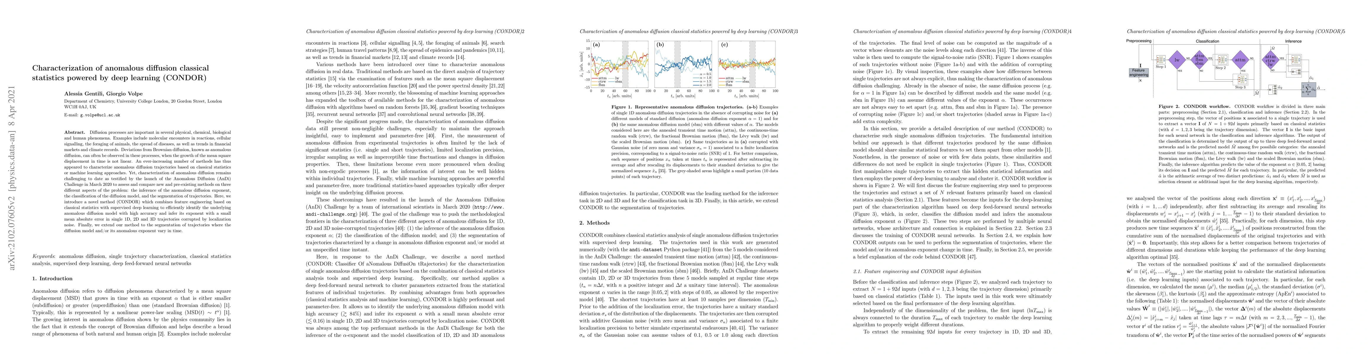 This paper introduces CONDOR, a novel method combining classical statistics and supervised deep learning to characterize anomalous diffusion in various physical, chemical, biological, and financial processes. CONDOR accurately identifies anomalous diffusion models and infers their exponents, even in noisy 1D, 2D, and 3D trajectories, and extends to segmenting trajectories where diffusion models change over time.