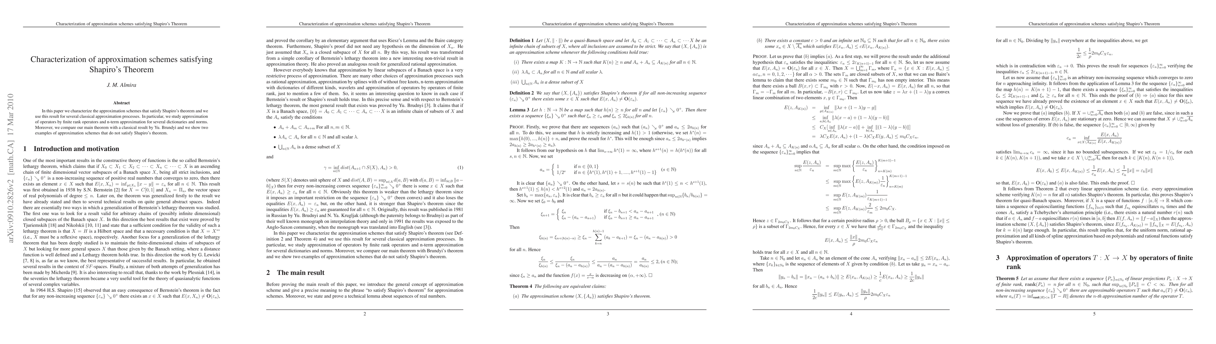 This paper characterizes approximation schemes satisfying Shapiro's Theorem, studying finite rank operators and n-term approximations for dictionaries and norms, with key examples of schemes that do not satisfy the theorem.