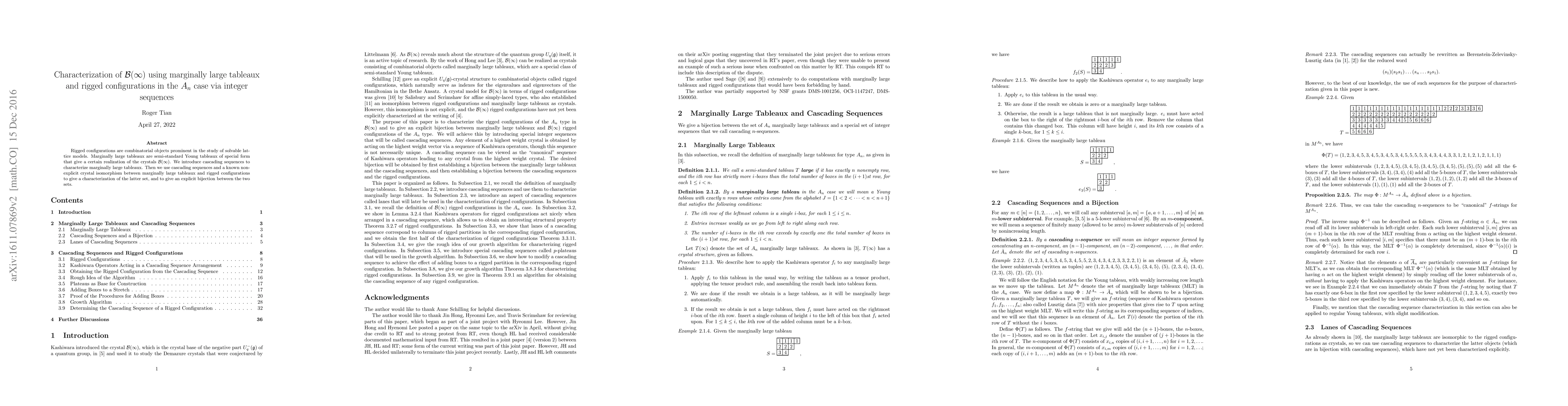 This paper characterizes the crystal ${f B}( extstyle{owtie})$ using marginally large tableaux and rigged configurations in the $A_n$ case, establishing a bijection between the two sets through cascading sequences.