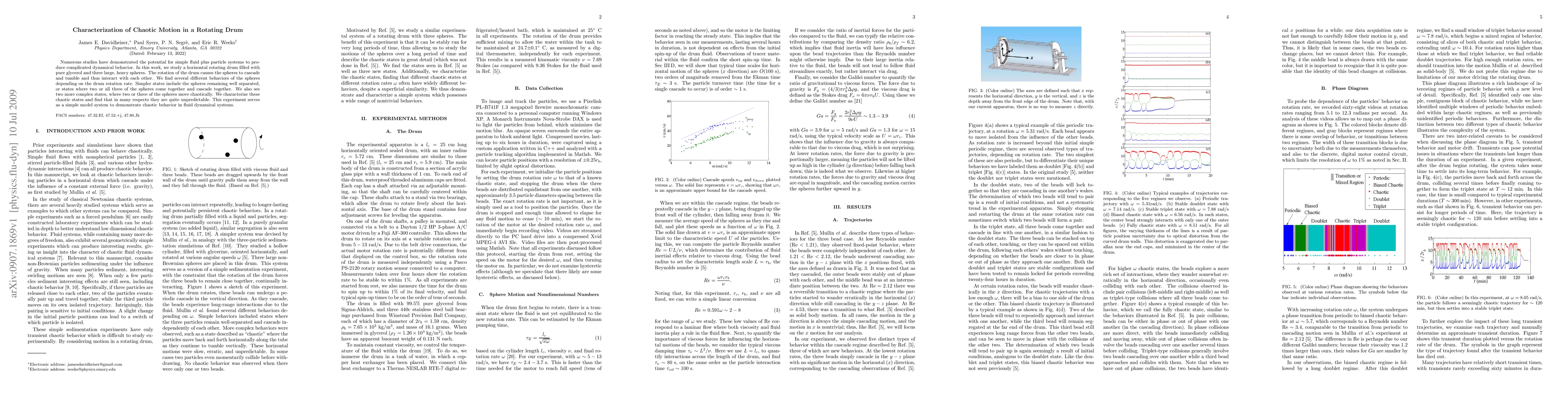 This study investigates the chaotic motion of three heavy spheres in a rotating drum filled with glycerol, revealing various dynamical behaviors from well-separated states to unpredictable chaotic interactions depending on the drum's rotation rate, thus serving as a model for chaotic dynamics in fluid systems.