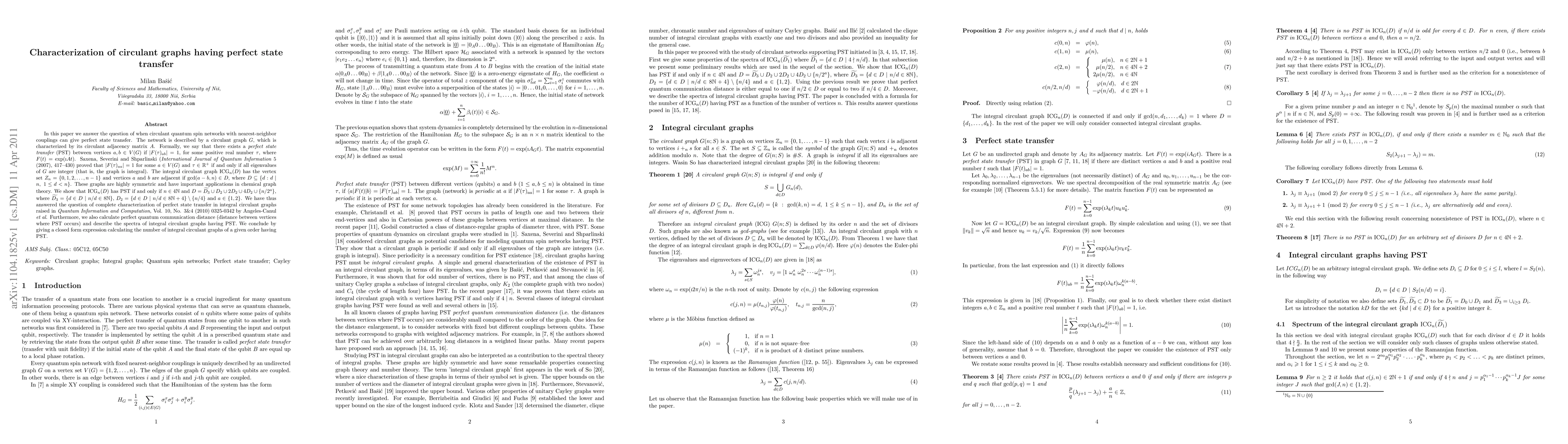 adjacency matrix $A$. Formally, we say that there exists a {\it perfect state