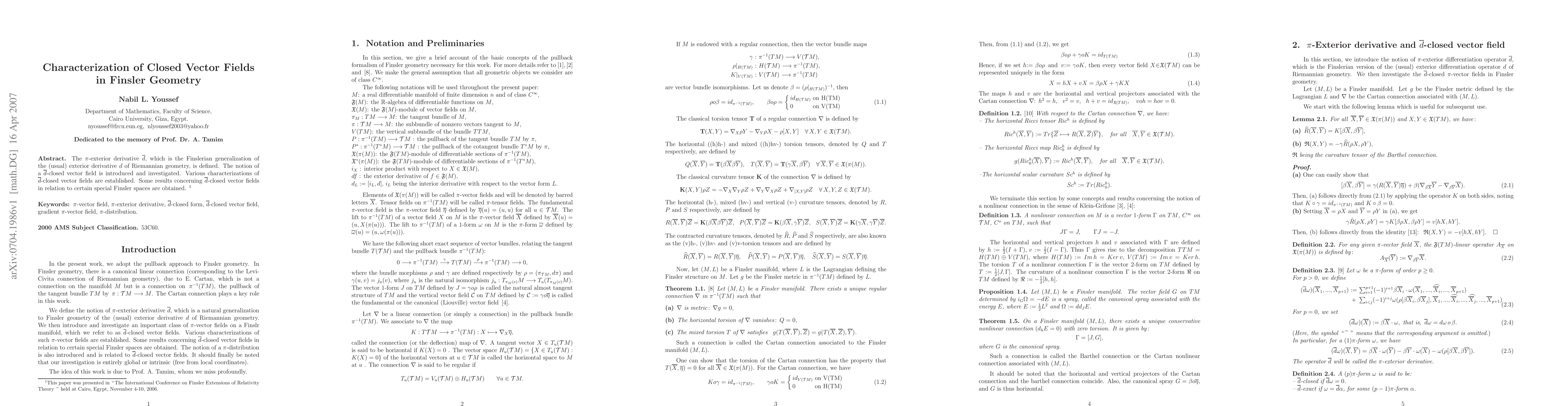 The $\pi$-exterior derivative ${\o}d$, which is the Finslerian generalization of the (usual) exterior derivative $d$ of Riemannian geometry, is defined. The notion of a ${\o}d$-closed vector field is introduced and investigated. Various characterizations of ${\o}d$-closed vector fields are established. Some results concerning ${\o}d$-closed vector fields in relation to certain special Finsler spaces are obtained.