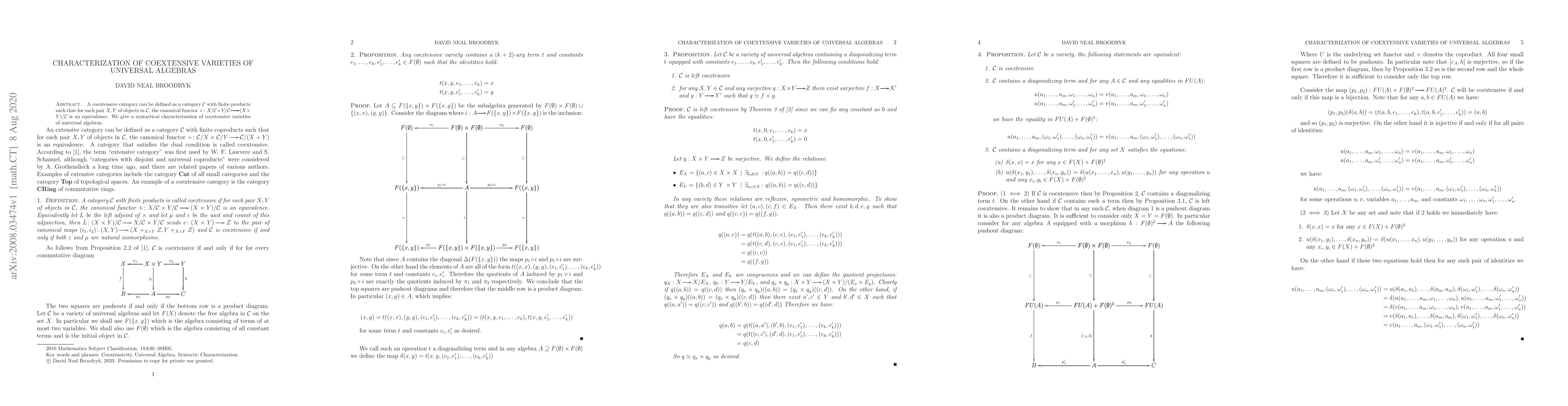 A coextensive category can be defined as a category $\mathcal{C}$ with finite products such that for each pair $X,Y$ of objects in $\mathcal{C}$, the canonical functor $\times\colon X/\mathcal{C} \times Y/\mathcal{C} \to (X \times Y)/\mathcal{C}$ is an equivalence. We give a syntactical characterization of coextensive varieties of universal algebras.