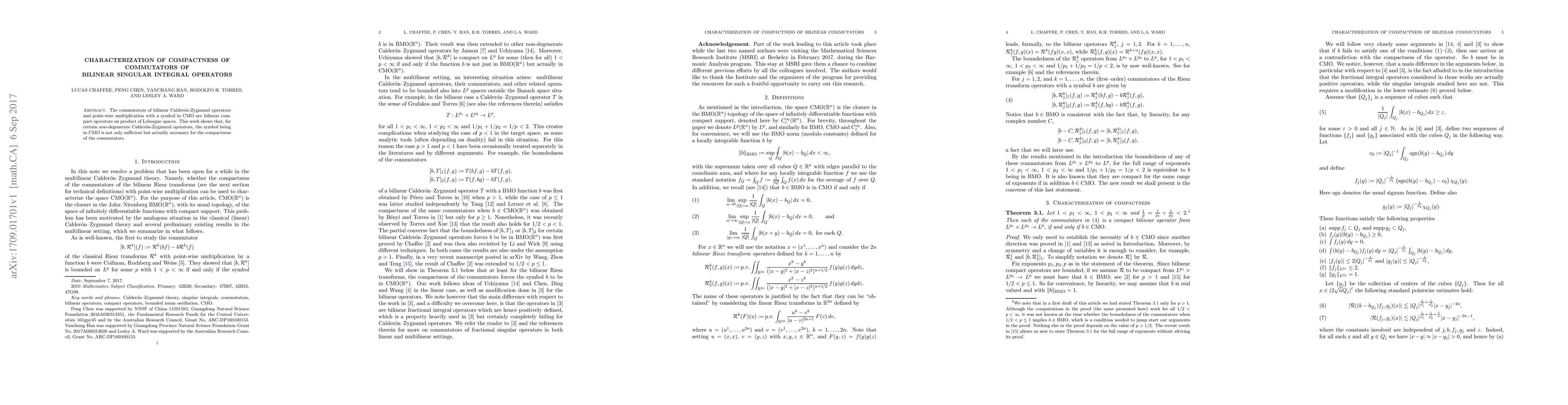 The commutators of bilinear Calder\'on-Zygmund operators and point-wise multiplication with a symbol in $cmo$ are bilinear compact operators on product of Lebesgue spaces. This work shows that, for certain non-degenerate Calder\'on-Zygmund operators, the symbol being in $cmo$ is not only sufficient but actually necessary for the compactness of the commutators.