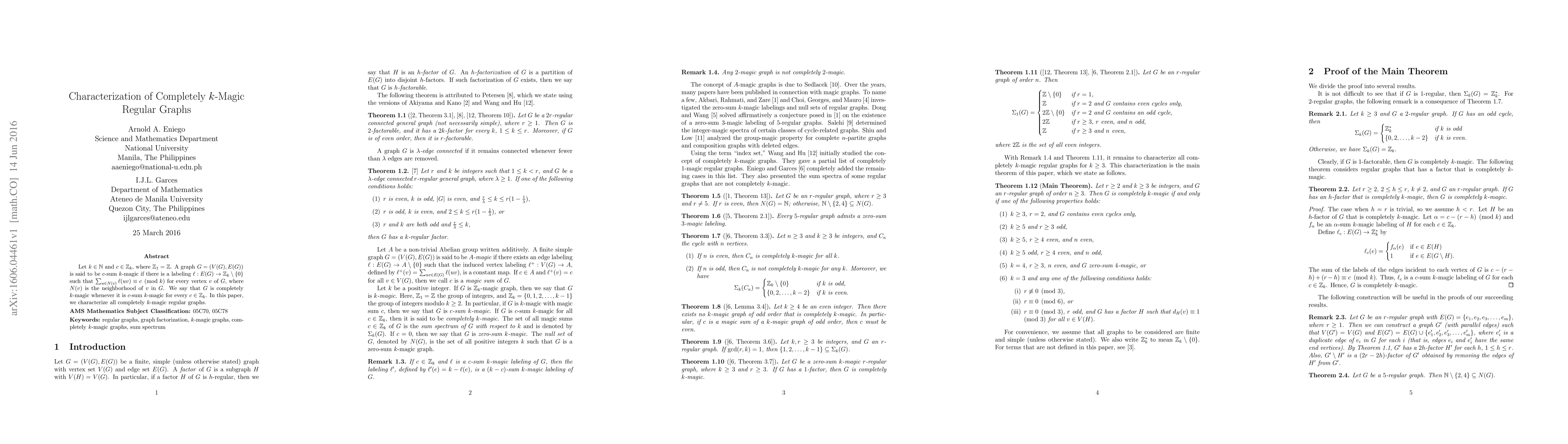This paper characterizes completely k-magic regular graphs, which are graphs where every vertex is labeled with a unique value modulo k such that the sum of labels for edges incident to each vertex is congruent to c modulo k for any c in Z_k. The research provides a complete characterization of all completely k-magic regular graphs.