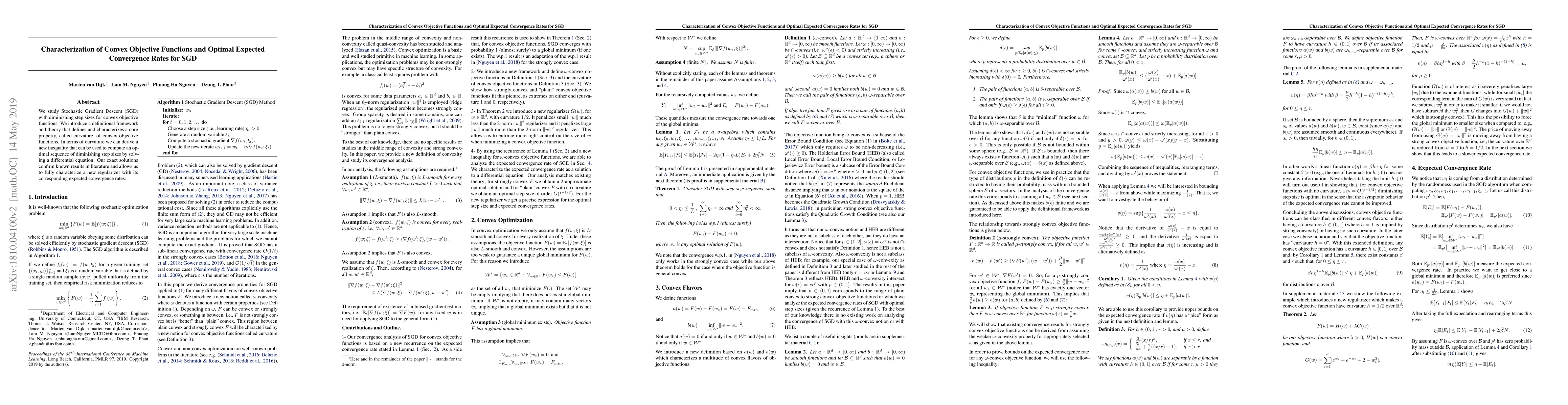 We study Stochastic Gradient Descent (SGD) with diminishing step sizes for convex objective functions. We introduce a definitional framework and theory that defines and characterizes a core property, called curvature, of convex objective functions. In terms of curvature we can derive a new inequality that can be used to compute an optimal sequence of diminishing step sizes by solving a differential equation. Our exact solutions confirm known results in literature and allows us to fully characterize a new regularizer with its corresponding expected convergence rates.